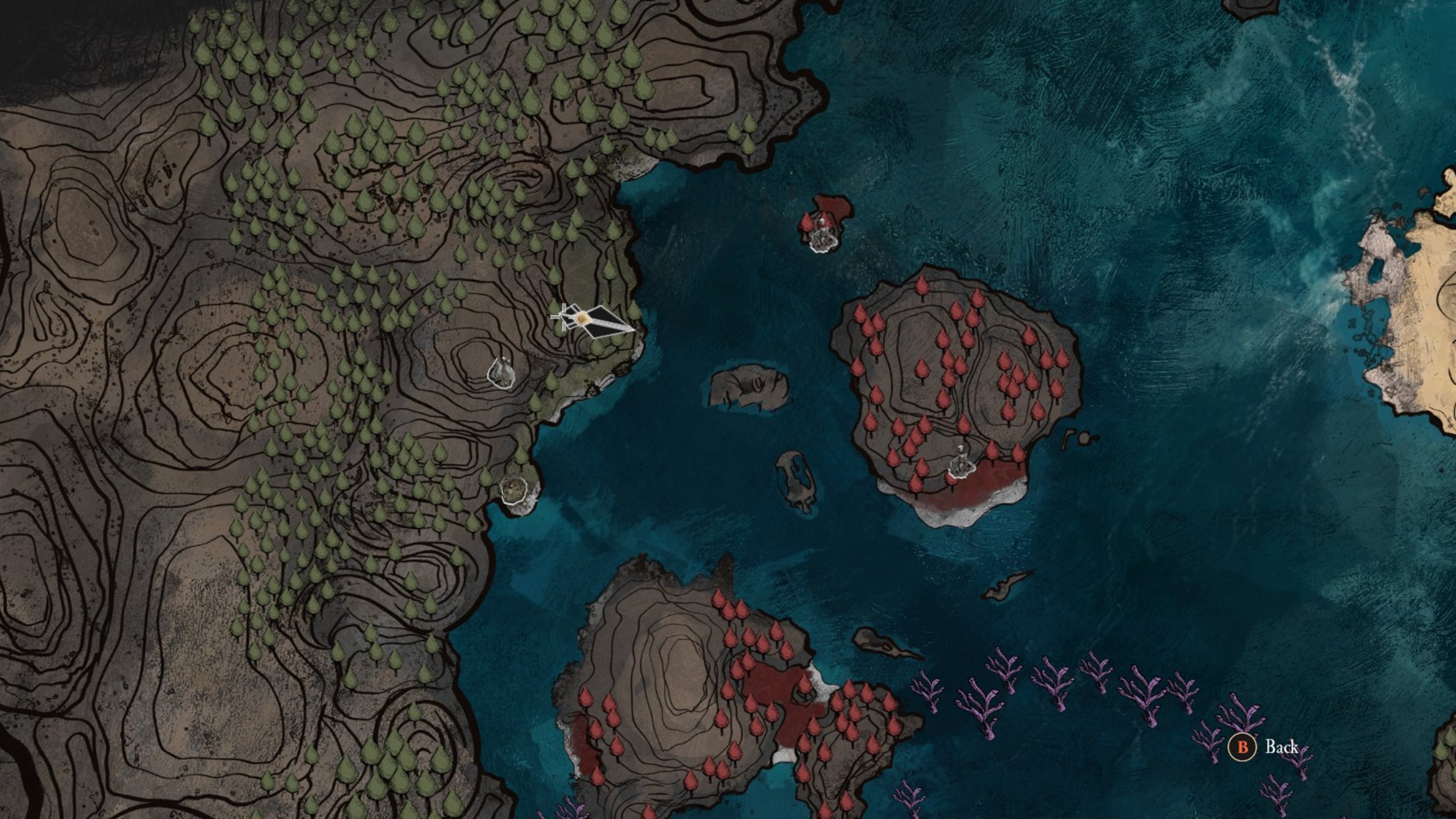 На северной окраине полуострова, справа будет небольшой пляж с врагами и потерянным жестралем. Если пропустите его, сможете вернуться сюда позже, пробив кораллы с помощью новой способности Эскье.