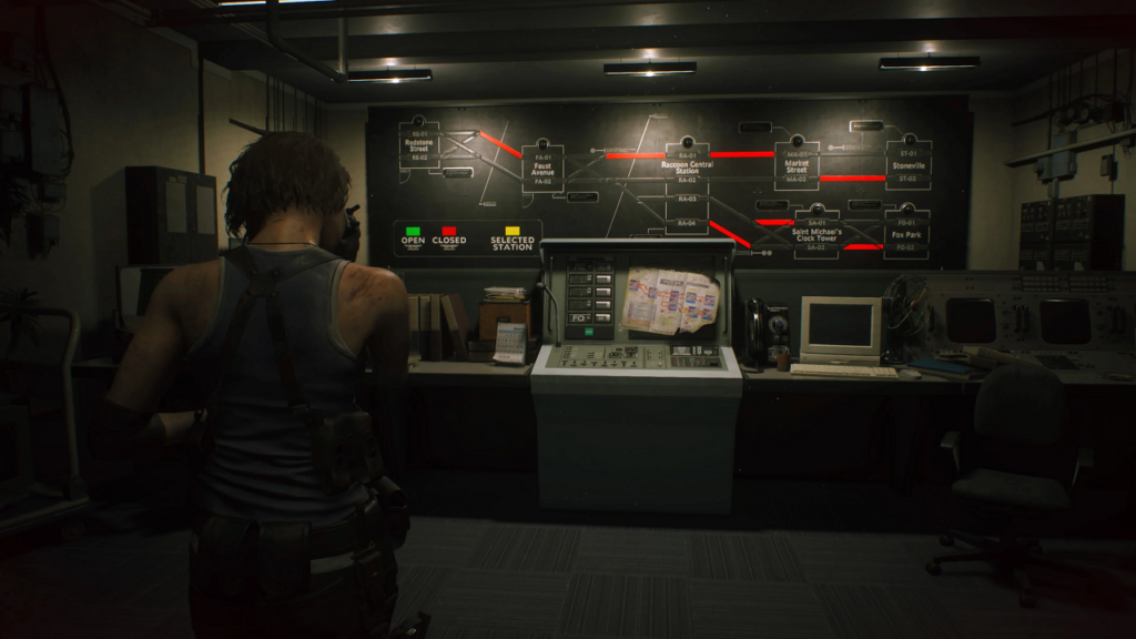 Когда доберетесь до офиса в метро, нужно будет воспользоваться системой переключателей на компьютере, чтобы настроить маршрут поезда от станции Редстоун-стрит до Фокс-парк.