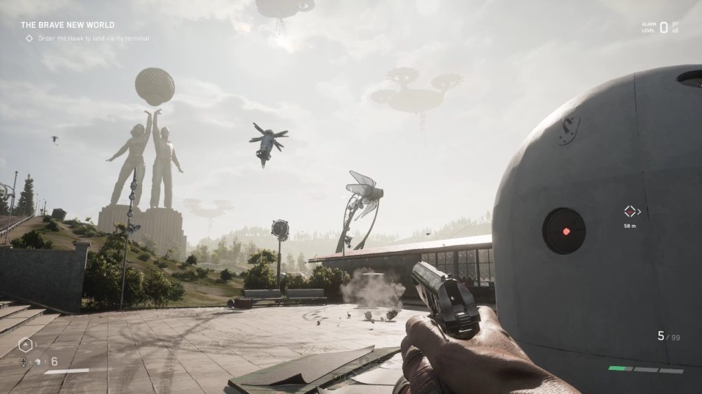 Как только доберетесь до поверхности после комплекса «Вавилов», столкнетесь с неприятным сюрпризом в виде постоянно возрождающихся врагов, которых восстанавливают ремонтные модули. Расставленные повсюду камеры повышают уровень тревоги, что может привести к появлению мощного подкрепления. Исследовать этот мир на поверхности — опасное занятие: из-за невнимательности легко оказаться в засаде блуждающих монстров. Это затрудняет взлом замков на многочисленных домах, чтобы найти ценную добычу.