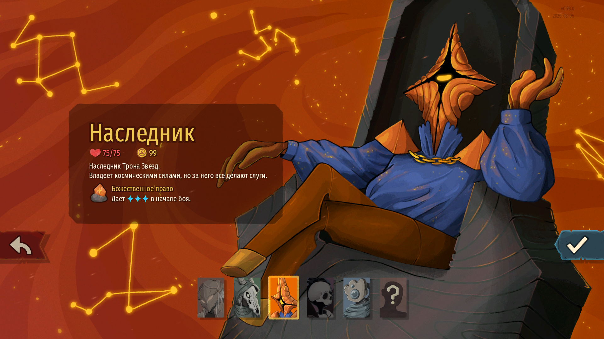 - Навык «Божественное право»: дает 3 звезды в начале боя.