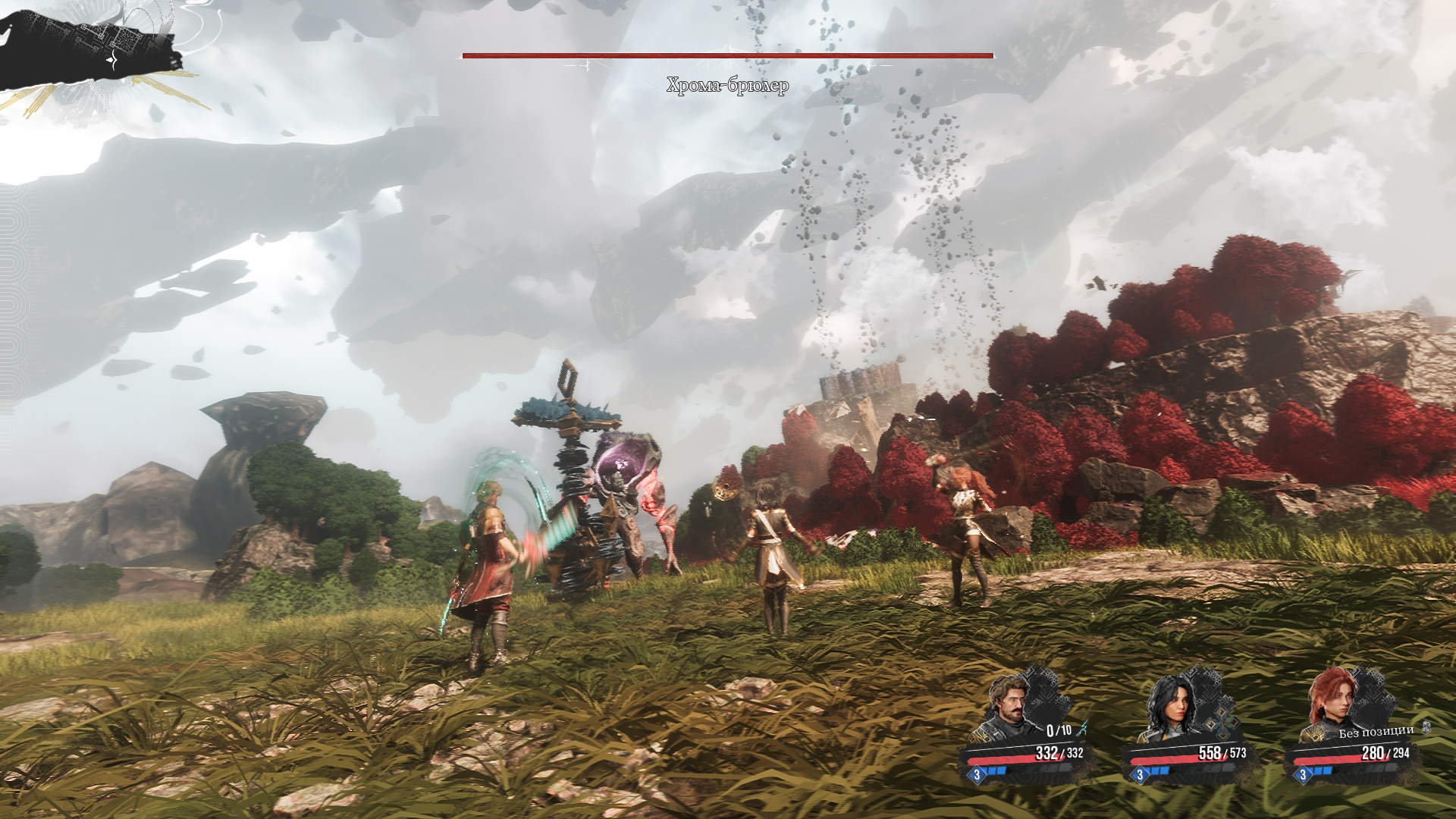 Если обойти красный лес по кругу, на севере будет большой враг — тот самый Хрома-брюлер. Монстр не будет преследовать вас при сближении, так что бой вы гарантированно начинаете с первого удара.