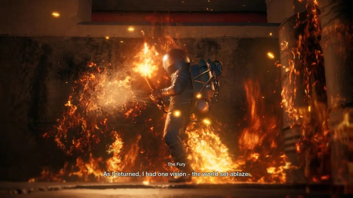 Как писалось выше, сражаться приходится в темном подземном тоннеле с длинными коридорами. Ярость применяет огнемет, чтобы перекрывать пути и атаковать вблизи. Если вы существенно отдалитесь, босс активирует ранец и за считанные секунды переместится к вам, полностью заливая проход огнем. Вблизи он использует мощную атаку в упор, которая окутывает Снейка пламенем и наносит урон до тех пор, пока вы не выберетесь из зоны поражения.