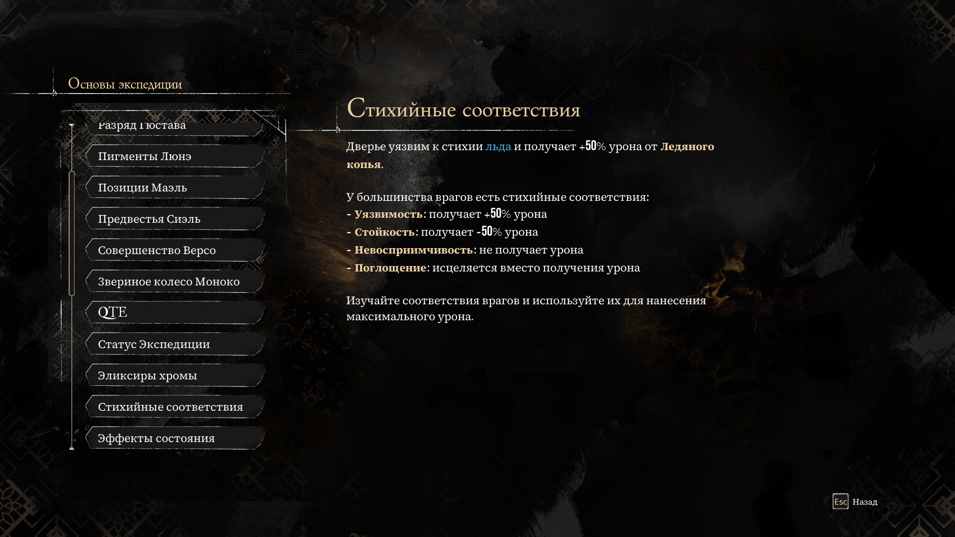 Таблица стихийных соответствий всех врагов Clair Obscur