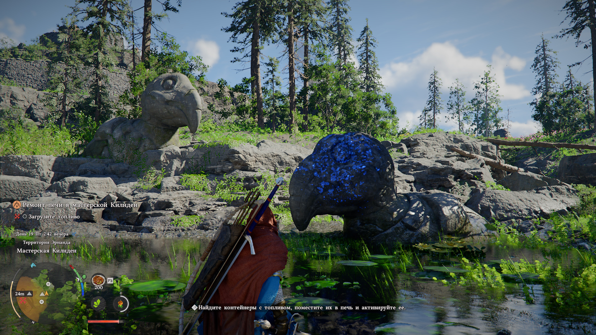 • Следующие две сферы расположены рядом с печью, к западу от нее. Одна валяется в воде ниже печи, а другая вставлена в большую каменную статую птицы, прямо в глаз. Таких статуй здесь 3-4, вас интересует та, что подсвечена.