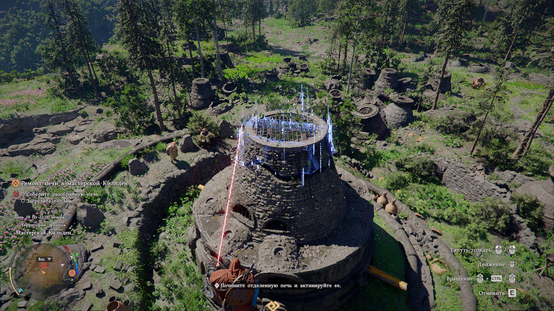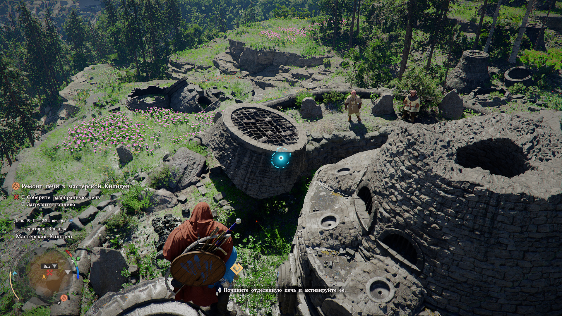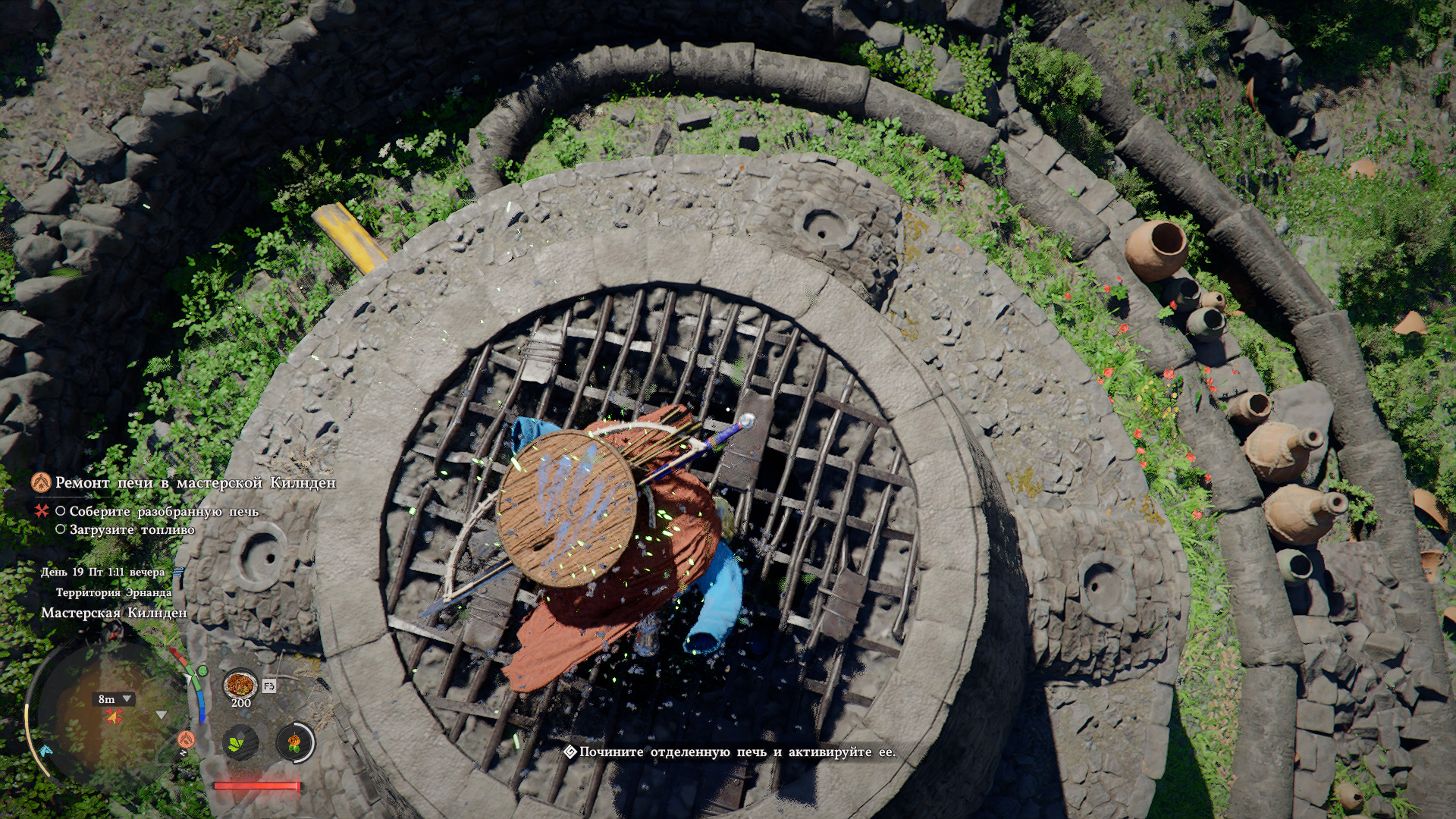 Пройдите по маркеру, чтобы обнаружить сломанную печь. На экране появится подсказка о том, как собирать такие печи. Вам нужен навык «Ладонь принуждения: Скачок». Даже если вы не прокачивали «Ладонь принуждения», эта способность будет разблокирована.