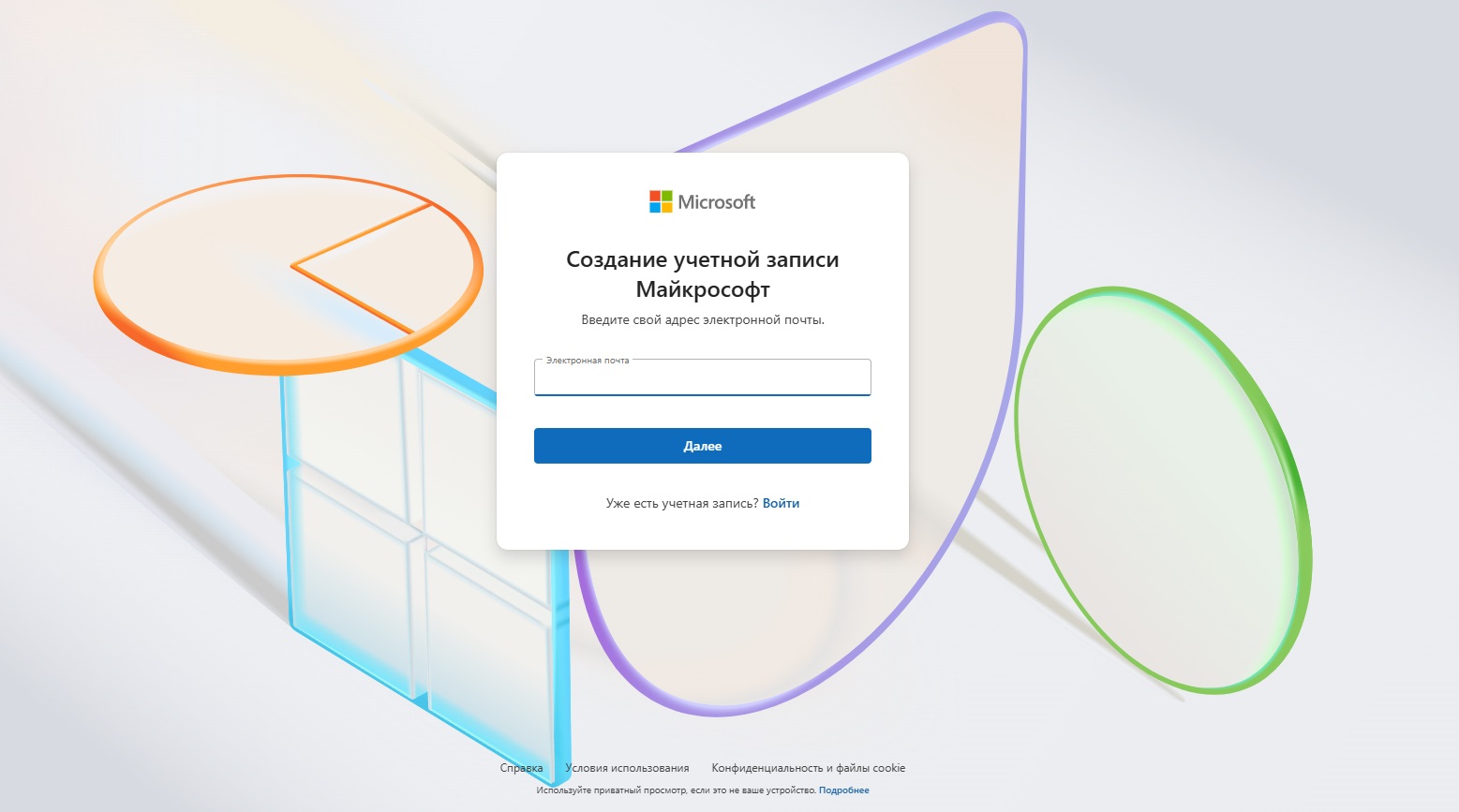 - Перейдите на сайт Microsoft, нажмите «Войти», затем «Нет учетной записи? Создайте ее!».