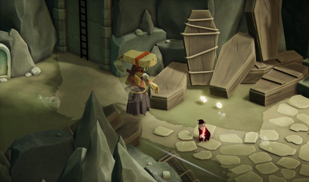 У него есть несколько атак. Он может просто размахивать своим оружием, если вы находитесь рядом, бить им о землю, пуская перед собой одно облако пыли, или подпрыгивать и в падении бить оружием о землю, испуская в разные стороны 6-7 клубов дыма. В последнем случае стойте как можно дальше от могильщика, чтобы было легче обойти разлетающийся дым. Наконец, периодически Гробоплит будет призывать миньонов. Обязательно убивайте их, поскольку любое касание приведет к потере ячейки ХП. После победы вы сможете подобрать первую древнюю скрижаль.