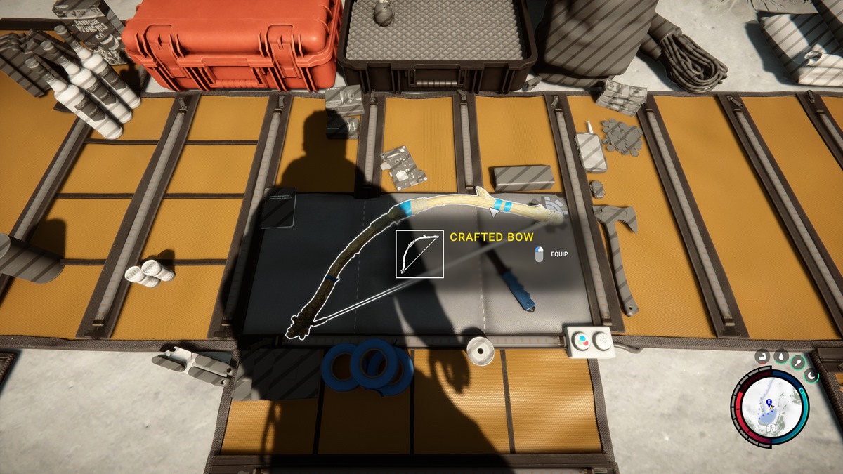 Хотя это отличный вариант для нанесения дальнего урона на ранних этапах игры, целиться из лука неудобно. Кроме того, другие варианты оружия дальнего боя наносят намного больше урона, чем созданный «на коленке» лук. Для крафта лука требуются 1 скотч, 1 веревка и 2 палки. Обычная стрела создается из 2 перьев (выпадают при убийстве птиц), 2 маленьких камней и 2 палок. На принтере можно делать усиленные стрелы. Также боеприпасы можно изредка найти в бункерах и подземельях.