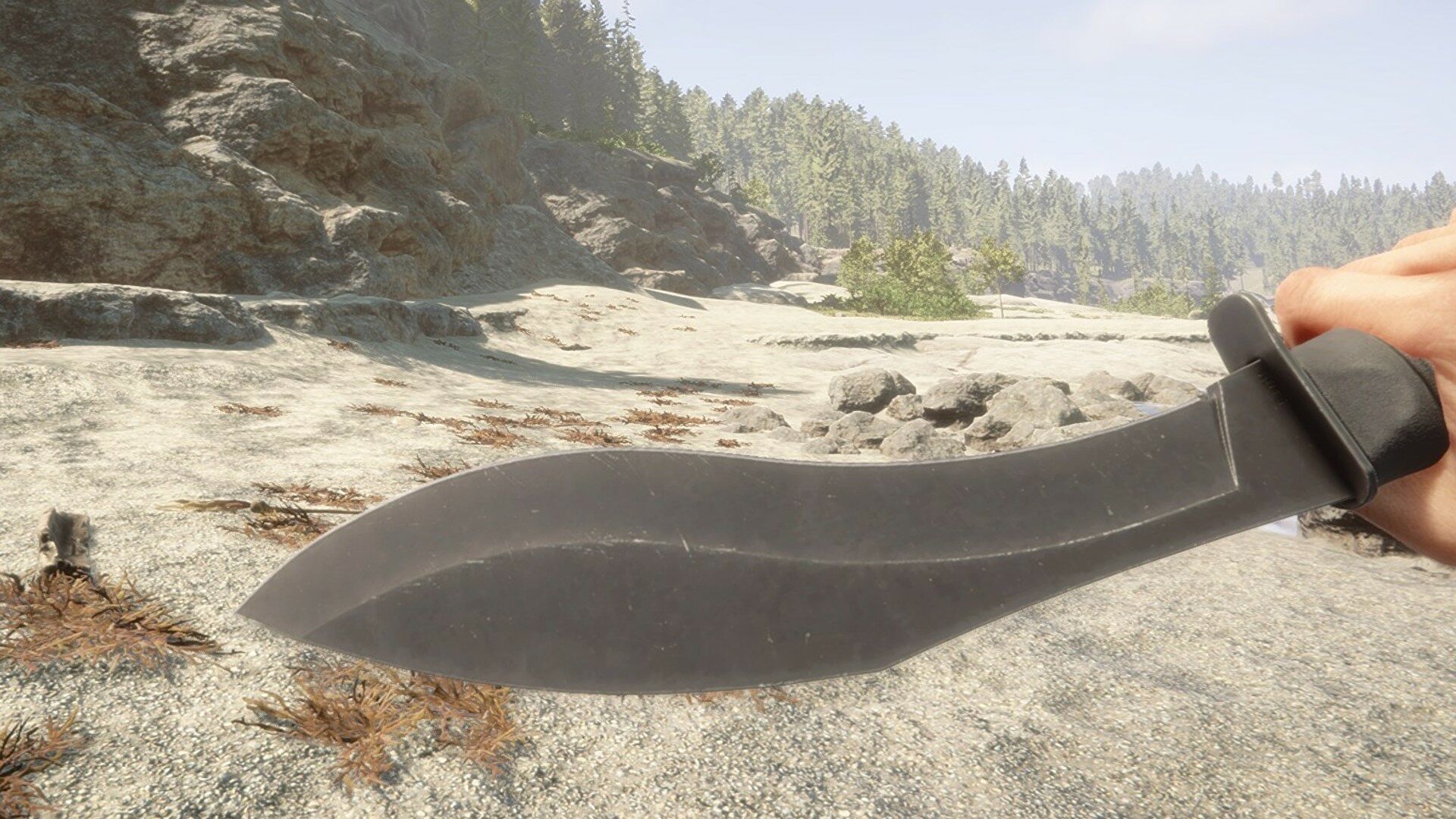 Этот топор не только более эффективен в плане добычи древесины, но и наносит значительно больший урон врагам. Хотя скорость атаки немного ниже, чем у более мелкого тактического топора, увеличенный урон упрощает рукопашный бой, делает его намного безопаснее. Ищите оружие в лагере каннибалов на открытом воздухе, за ручьем от ремонтной шахты, где находится красная ключ-карта.
