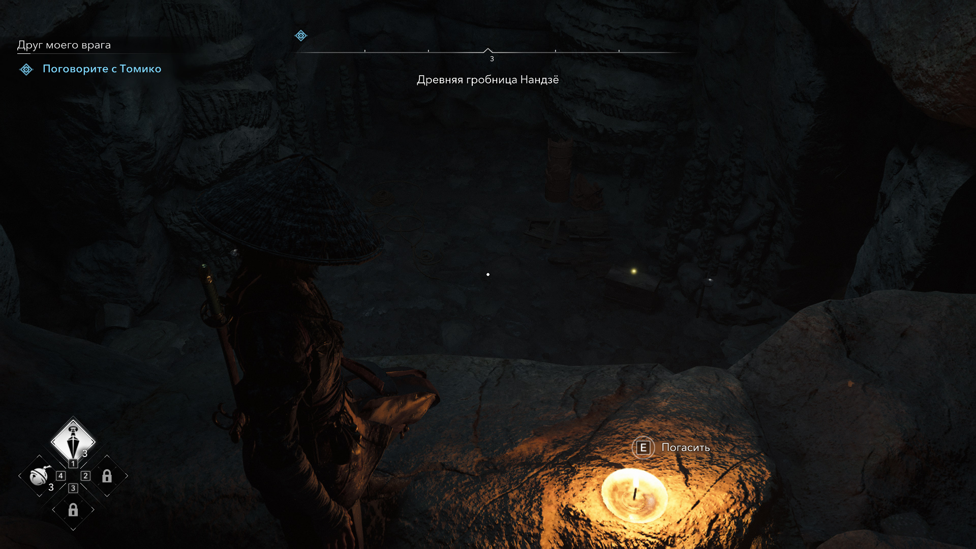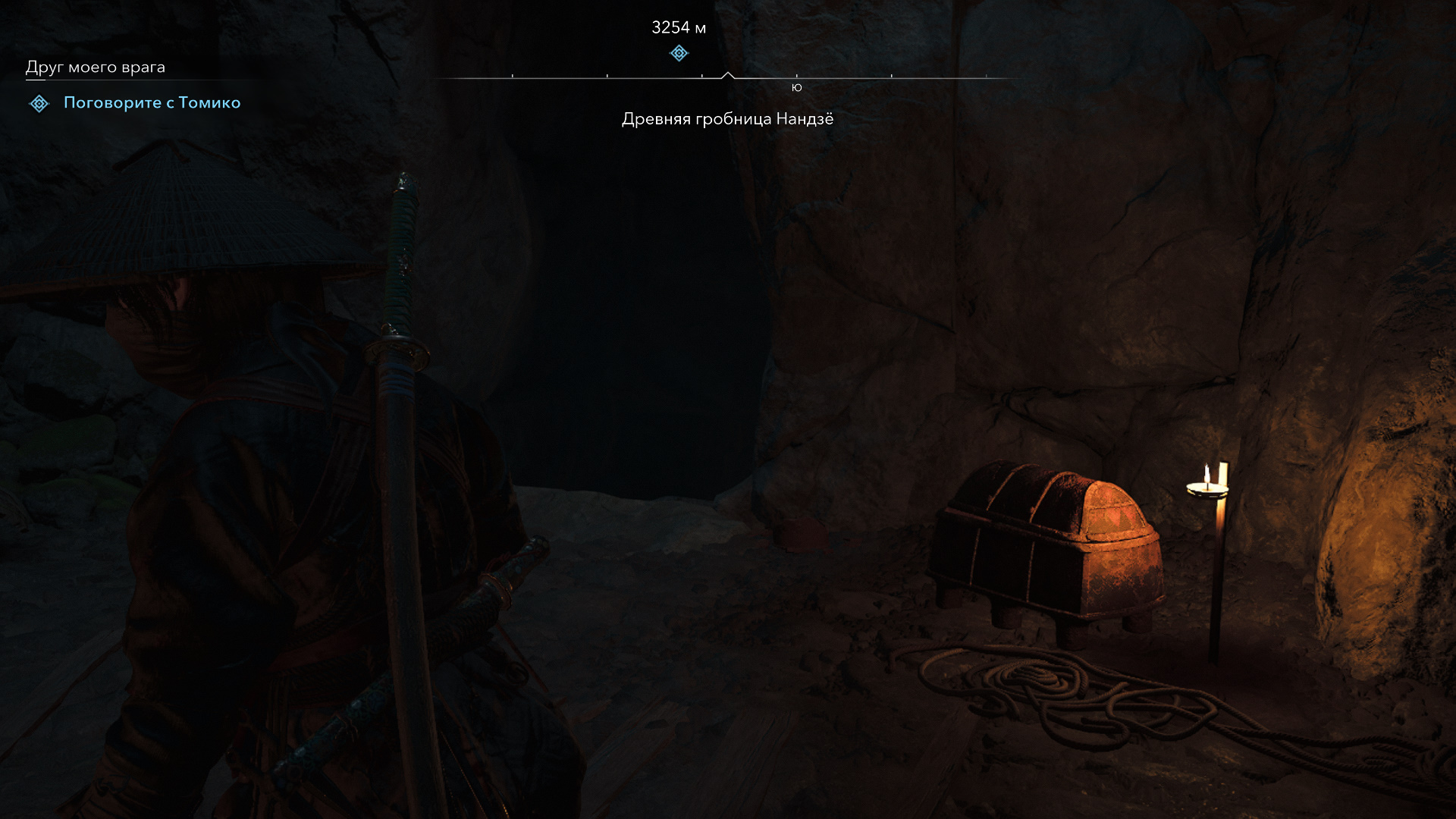 Ползите через дыру в стене, бегите вперед и через узкий проем проберитесь в комнату с легендарным сундуком. Откройте его, чтобы получить в награду легендарный танто «Месть Юкимицу» (ослабленные противники становятся уязвимы), 1000 очков опыта и 1 очко знаний.