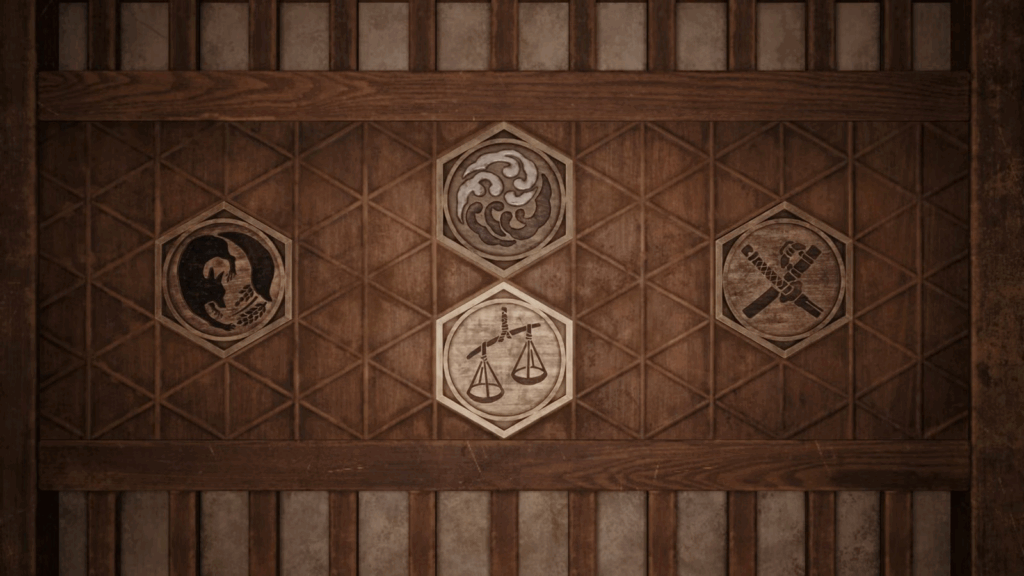 Вернитесь к комнате Хинако с тремя эмблемами на руках, в настоящем времени, и разместите все три найденные пластины (четвертая уже на месте). Решение зависит от того, на какую концовку вы идете, и будет следующим: