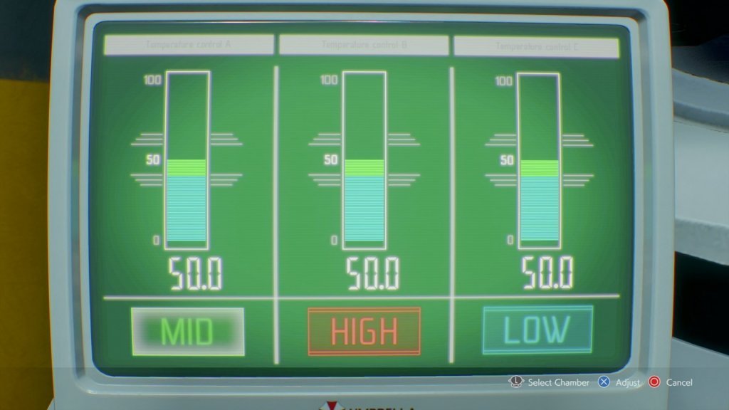 Идите вправо, уничтожьте зомби и откройте чемодан, чтобы получить лечебный спрей. Затем нажмите на центральную красную колбу — это откроет запертую дверь.