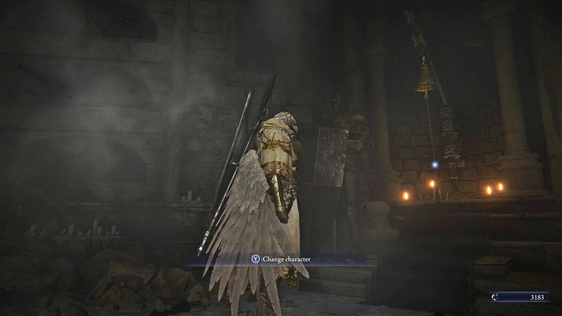 Чтобы сменить персонажа у Круглого Стола, найдите небольшую нишу в правом нижнем углу центральной залы — там висит изящный колокол над доспехами. Взаимодействуйте с ним, чтобы переключаться между доступными персонажами прямо внутри Крепости.