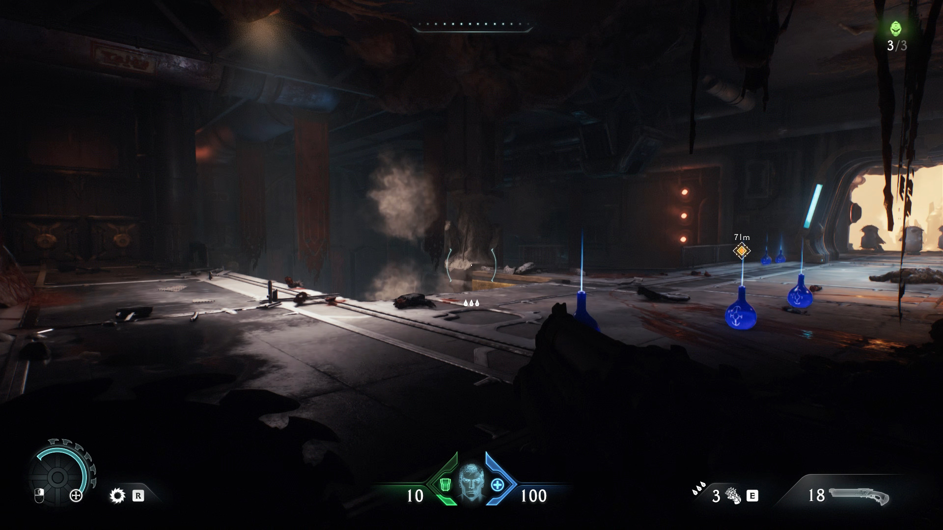 Подобрав 3 первых золотых слитка, войдите в здание, не спускаясь по ступеням. Внутри увидите длинный коридор, в конце которого стоит манкубус, а на пути к нему — десятки врагов с раскаленными и энергетическими щитами. Не идите в коридор, а посмотрите вдоль стены слева. Здесь лежат 3 золотых слитка и сразу за ними есть разрушаемая стена: