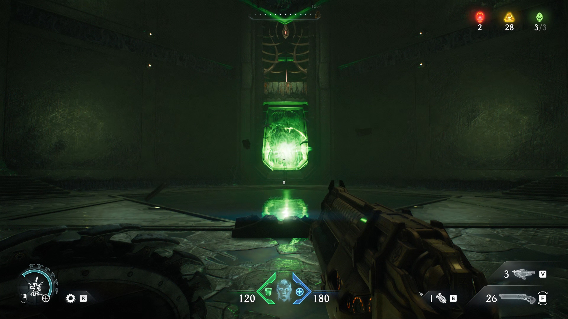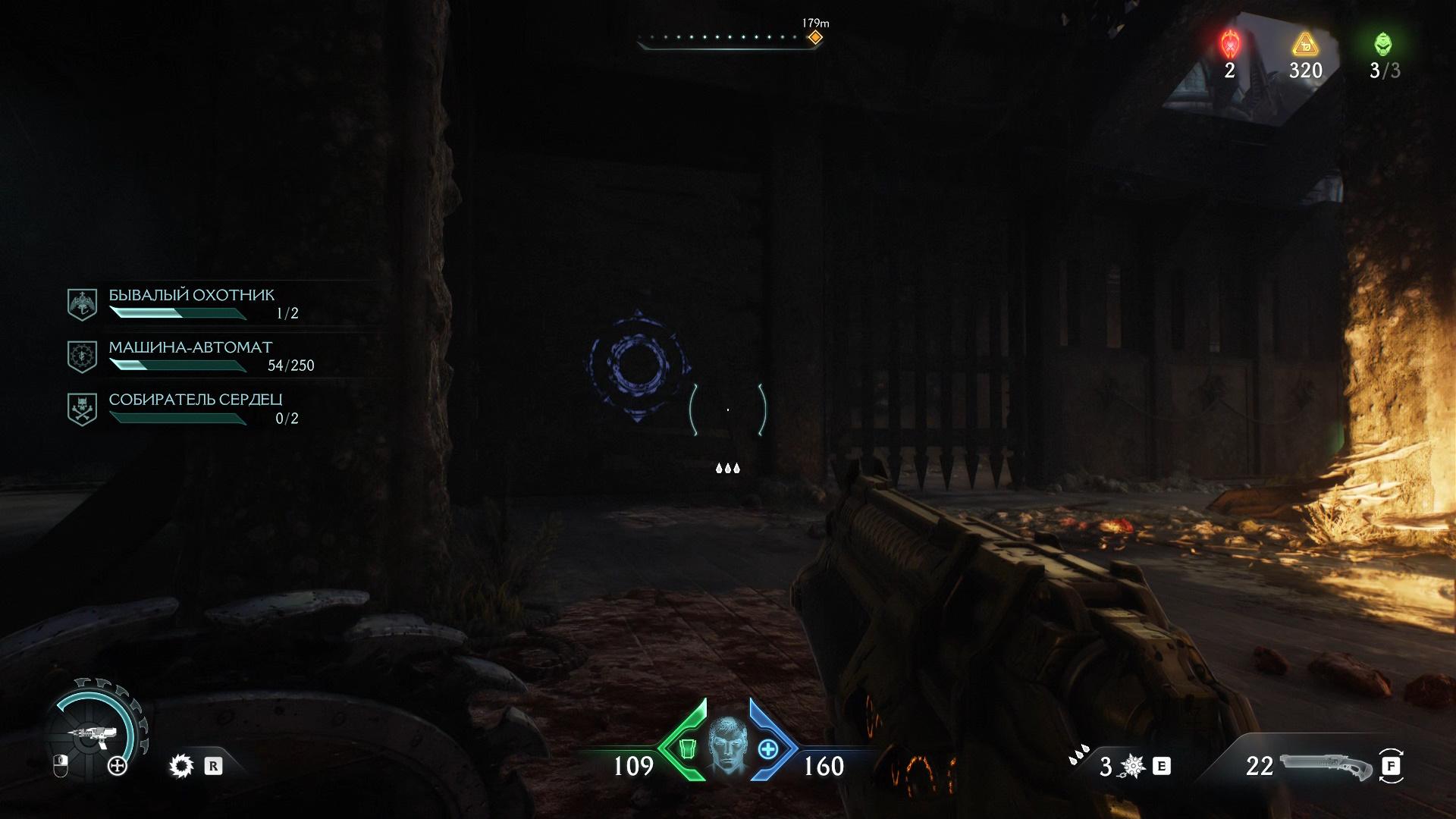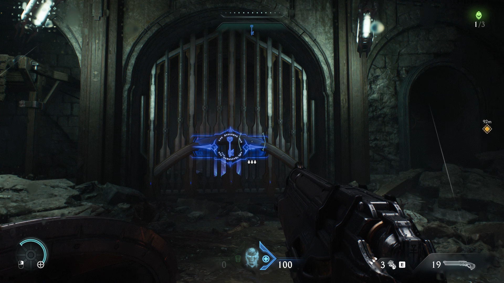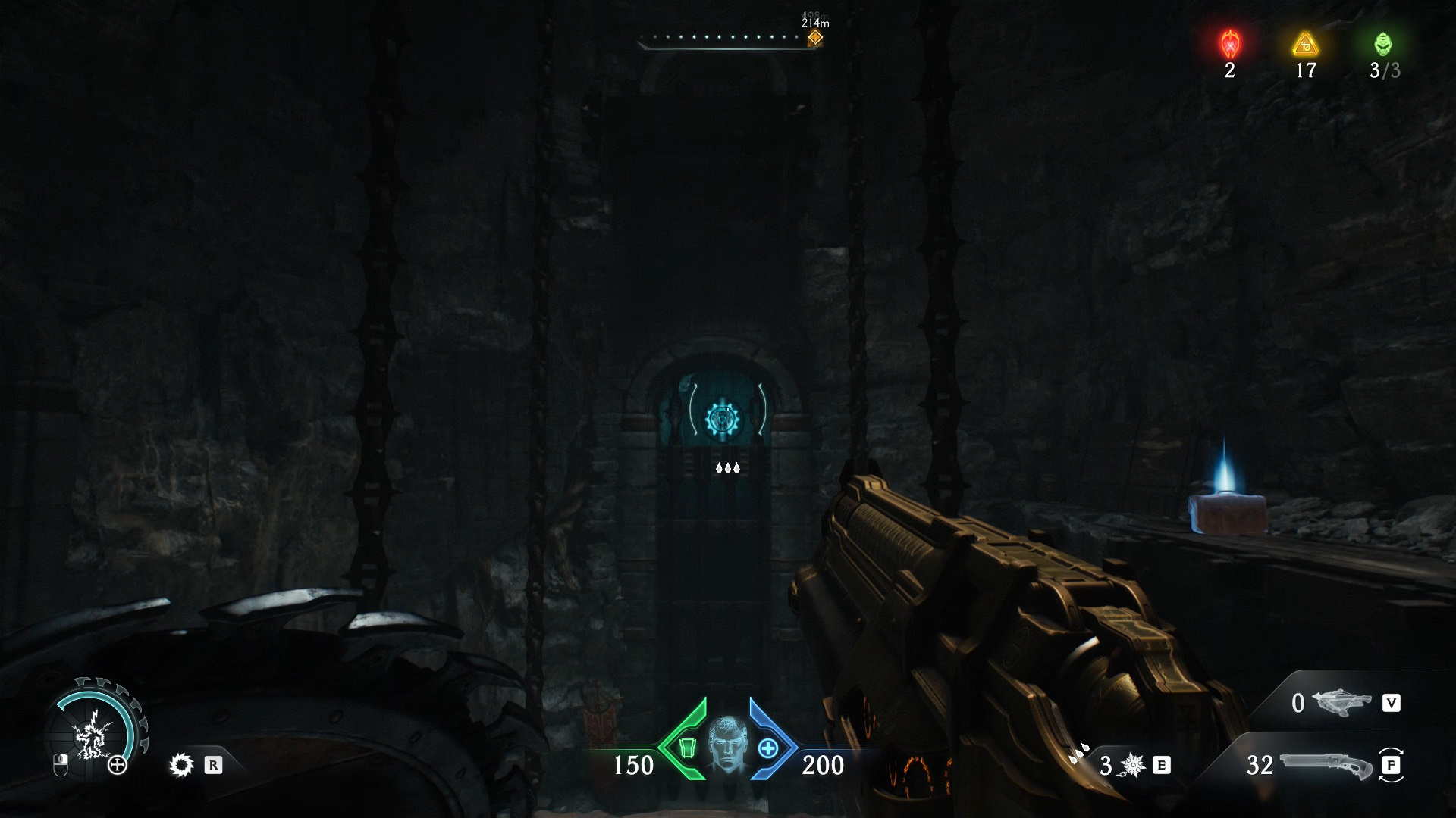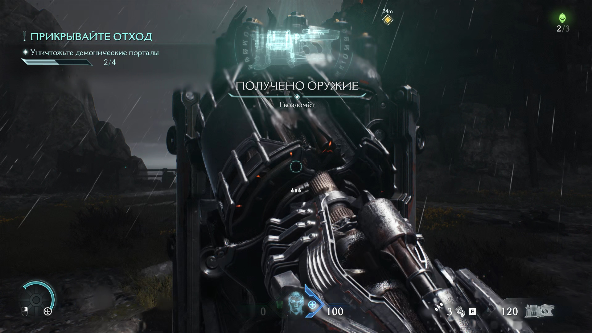 Применив по сюжету синий ключ, вы будете вынуждены искать и закрывать демонические порталы. Закройте первый портал на стартовой локации, идите влево и закройте второй. За коридором с печатью жизни вы обнаружите контейнер с новым оружием — Гвоздемётом.