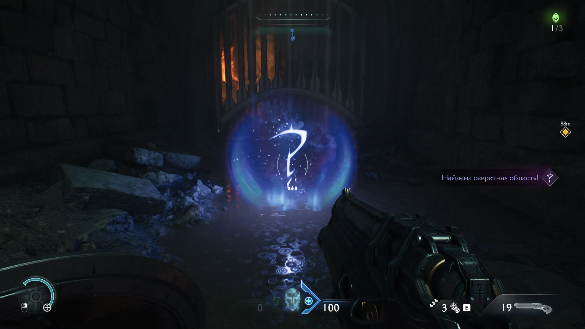 Здесь есть частично разрушенная стена с печатью, которую можно пробить рывком со щитом (ПКМ+ЛКМ). Сделайте это, уничтожьте круг сектантов и подберите печать жизни. Это и есть первая секретная локация.