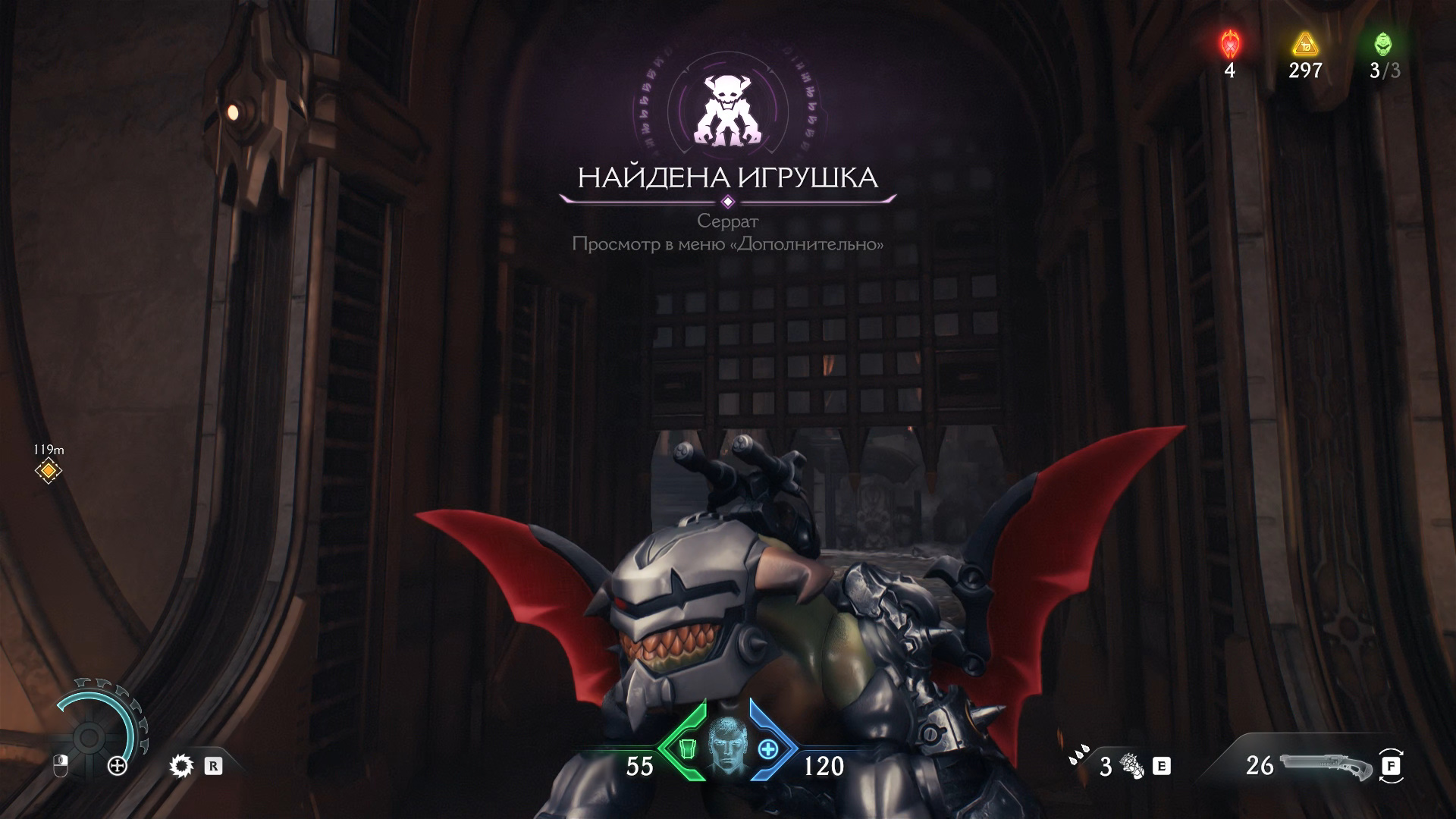 Как только упретесь в запертую решетку, для которой нужен синий ключ, двигаясь в направлении маркера за этим ключом, обратите внимание на еще одну решетку с синей печатью по правую руку. За ней спрятан игрушечный демон «Имп».