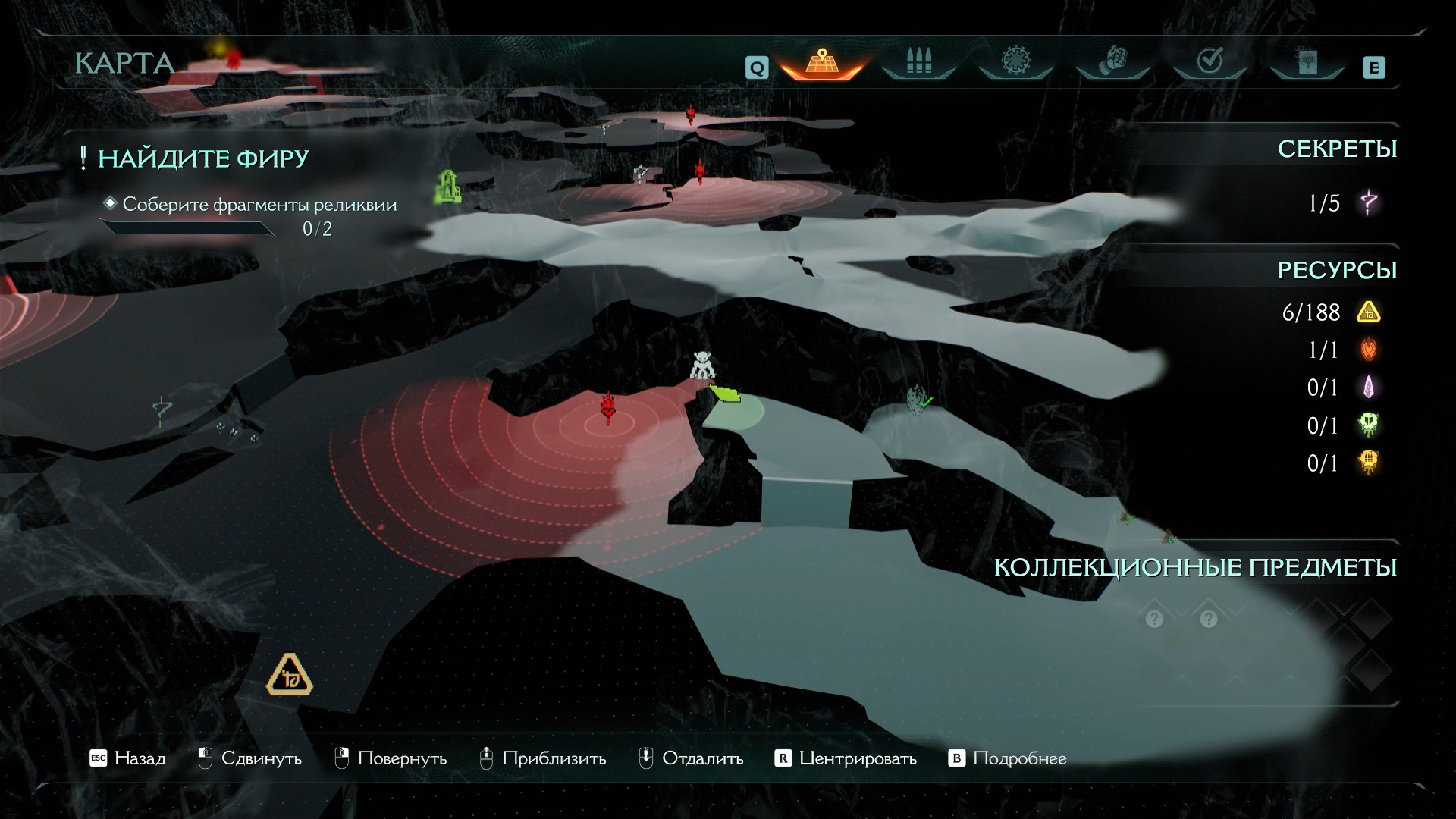Неподалеку от предыдущего секрета есть красная область и значок игрушки. Прежде чем туда спуститься, поднимитесь по неровной стене чуть ниже, рядом с пещерой, где была статуя с рубином и головоломка. Здесь нужно встать на кнопку, чтобы внизу открылась нише с раскалённым металлом.