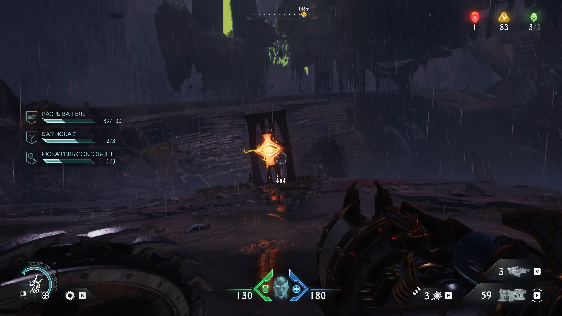 Активировав и воспользовавшись порталом, заберитесь в обломки корабля впереди. Убейте врагов, прыгните вперед и вправо. Не спешите ломать стену перед собой, а посмотрите правее, чтобы обнаружить блок с запертой клеткой, где лежит игрушка.