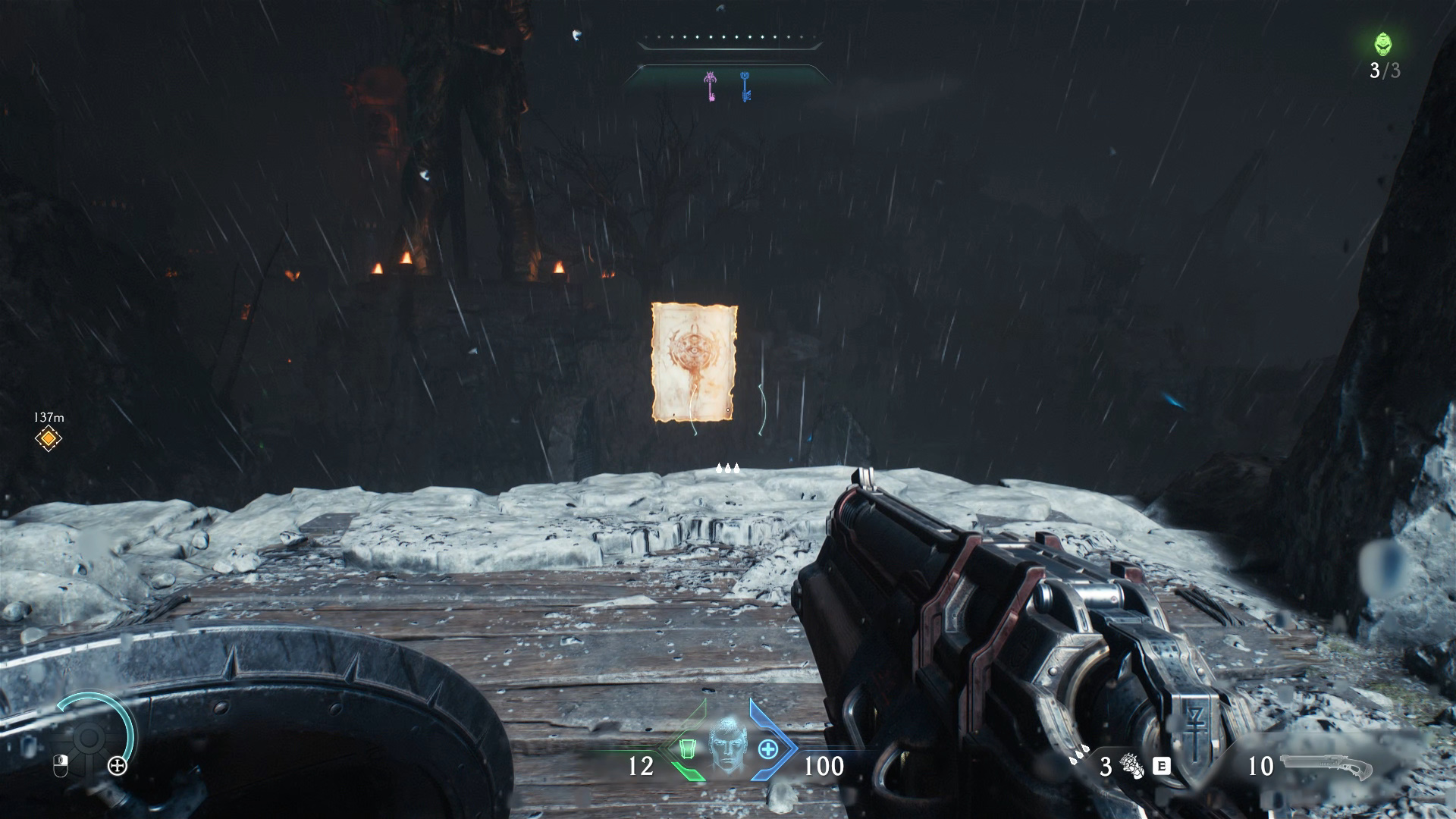 Следуйте туда, поднимитесь по паре неровных стен и заберите свою первую страницу хроник для кодекса под названием «Палач Рока».