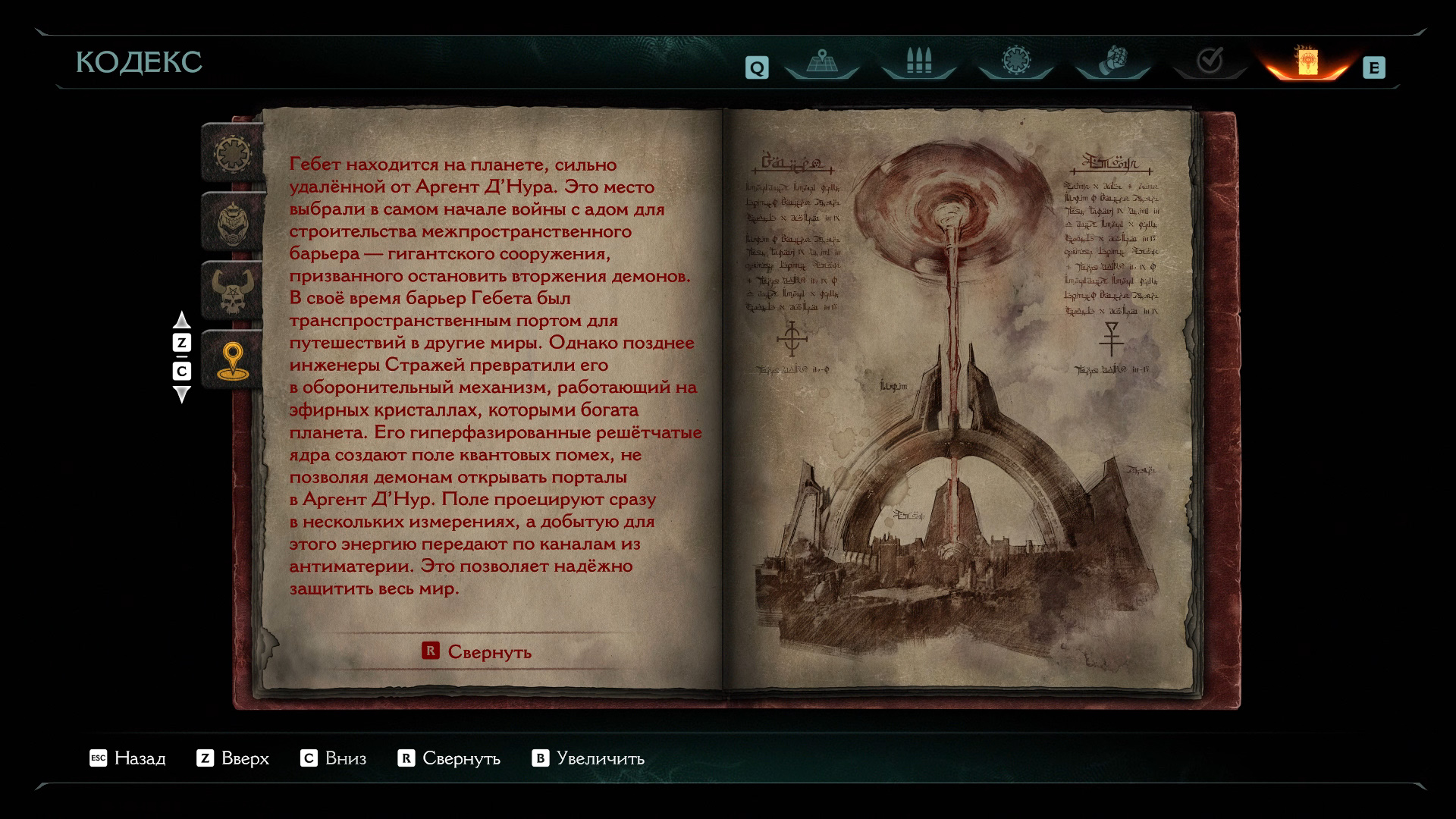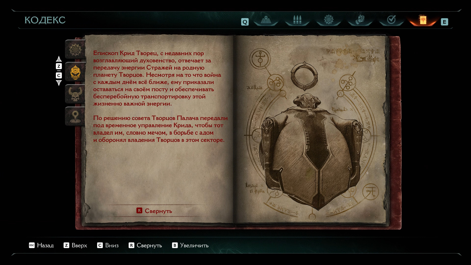 Все записи и страницы Кодекса в главе 12 «Командный пункт Стражей»