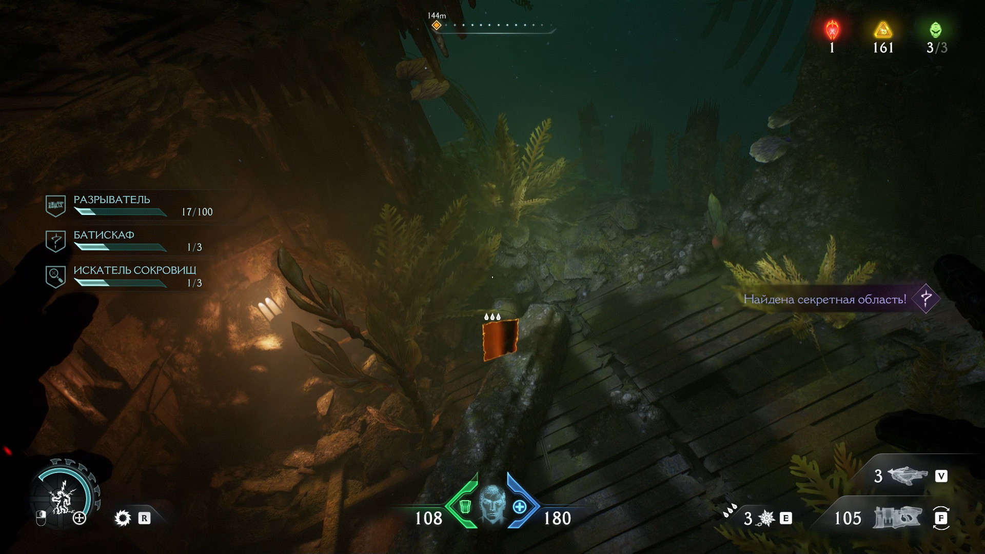 Впервые оказавшись под водой, плывите вперед внутрь затопленного корабля.