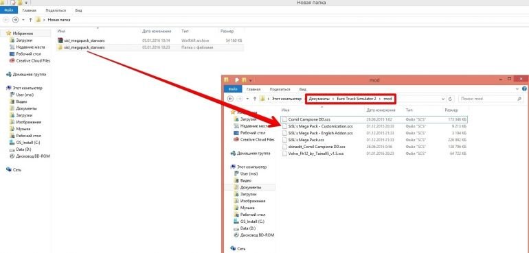 — По адресу C:UsersИмя ПользователяДокументы должна находится папка Euro Truck Simulator 2, если вы хоть раз зашли в игру. В ней, если отсутствует, необходимо создать папку mod.