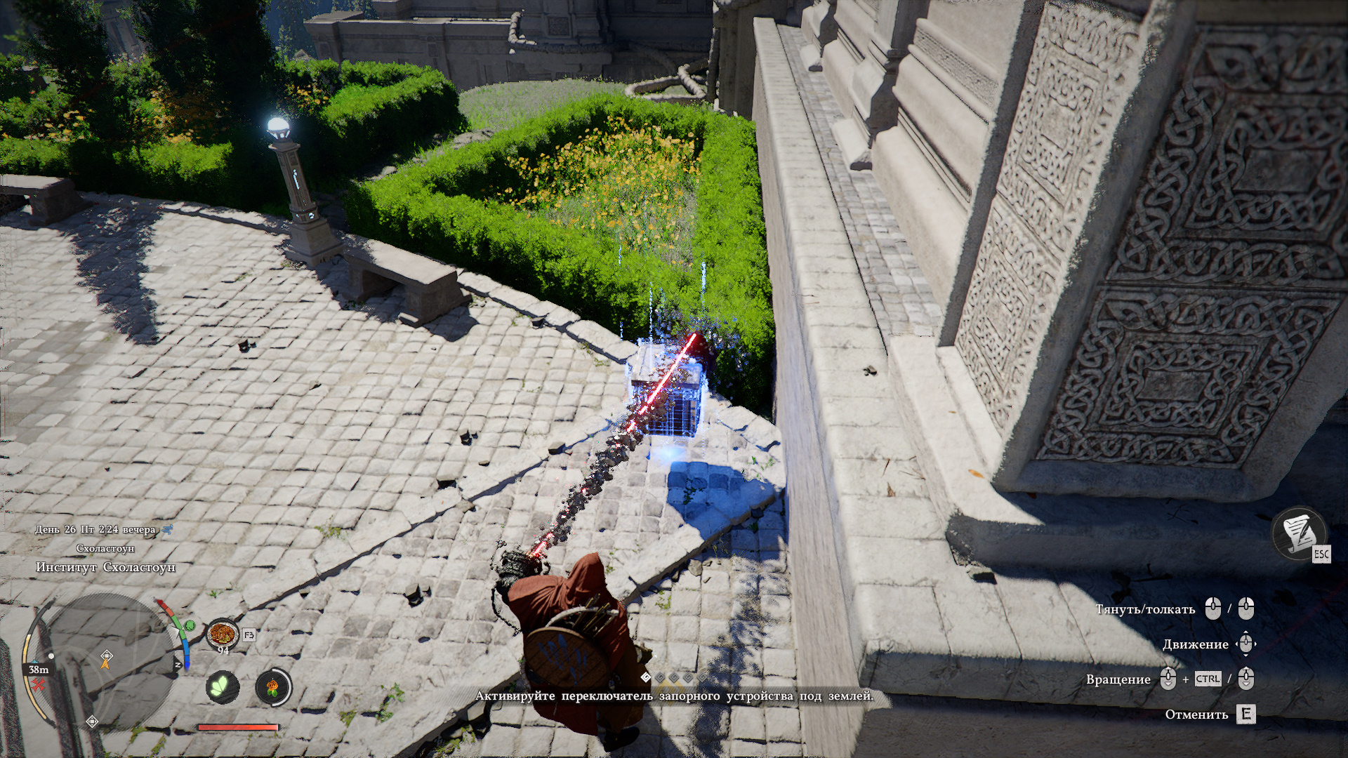 Следующая задача — «Удалите нестабильное ядро с помощью Аксиомы силы». Примените Силы Аксиомы на синее ядро в центре, зажмите Q, чтобы перейти в управление, и двигайте мышь вверх. Тем самым вы будете тянуть вверх и само ядро. Вскоре оно вылетит, и задание завершится.