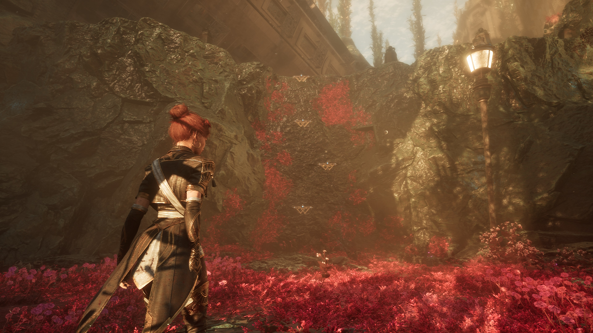 Осколок эликсира хромы 4. Забытое поле боя. От флага «Поле боя» идите за спину Тающей женщины, с левой стороны будут два прохода с красочницей и замками от нее.