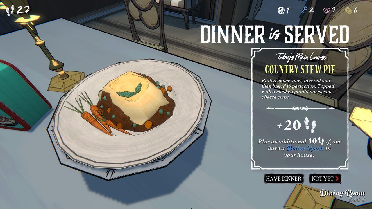 Столовая — идеальное место для восполнения шагов. Каждый день в ней можно найти роскошный обед, но доступ к нему открывается только с 8-го ранга поместья, что соответствует предпоследнему ряду сверху.