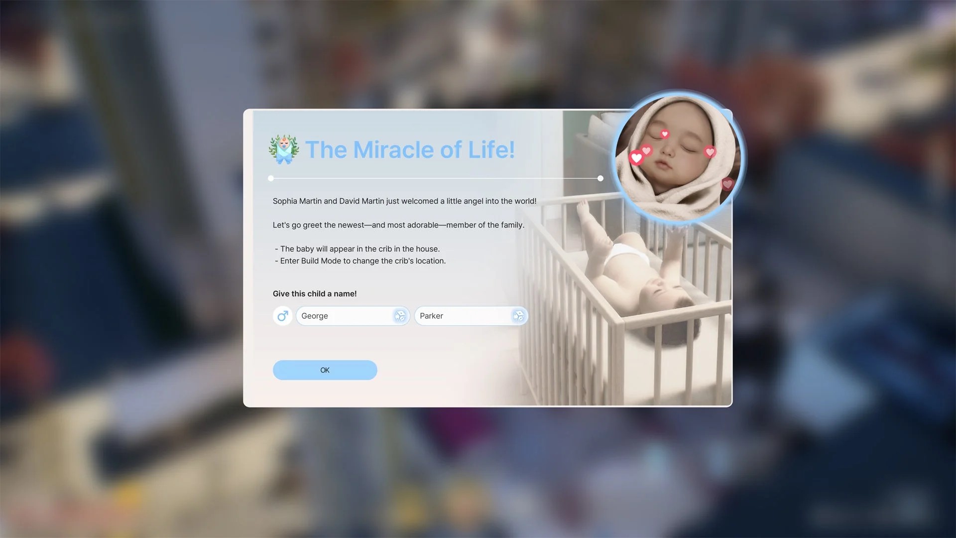 Если в момент родов беременная Зои не входит в вашу активную семью, вы не увидите кат-сцену из больницы и уведомление о рождении. Это важно, поскольку всплывающее уведомление — единственный момент, когда можно выбрать имя для ребенка. Если вы его пропустите, ребенок автоматически получит фамилию отца и ему дадут случайное имя.