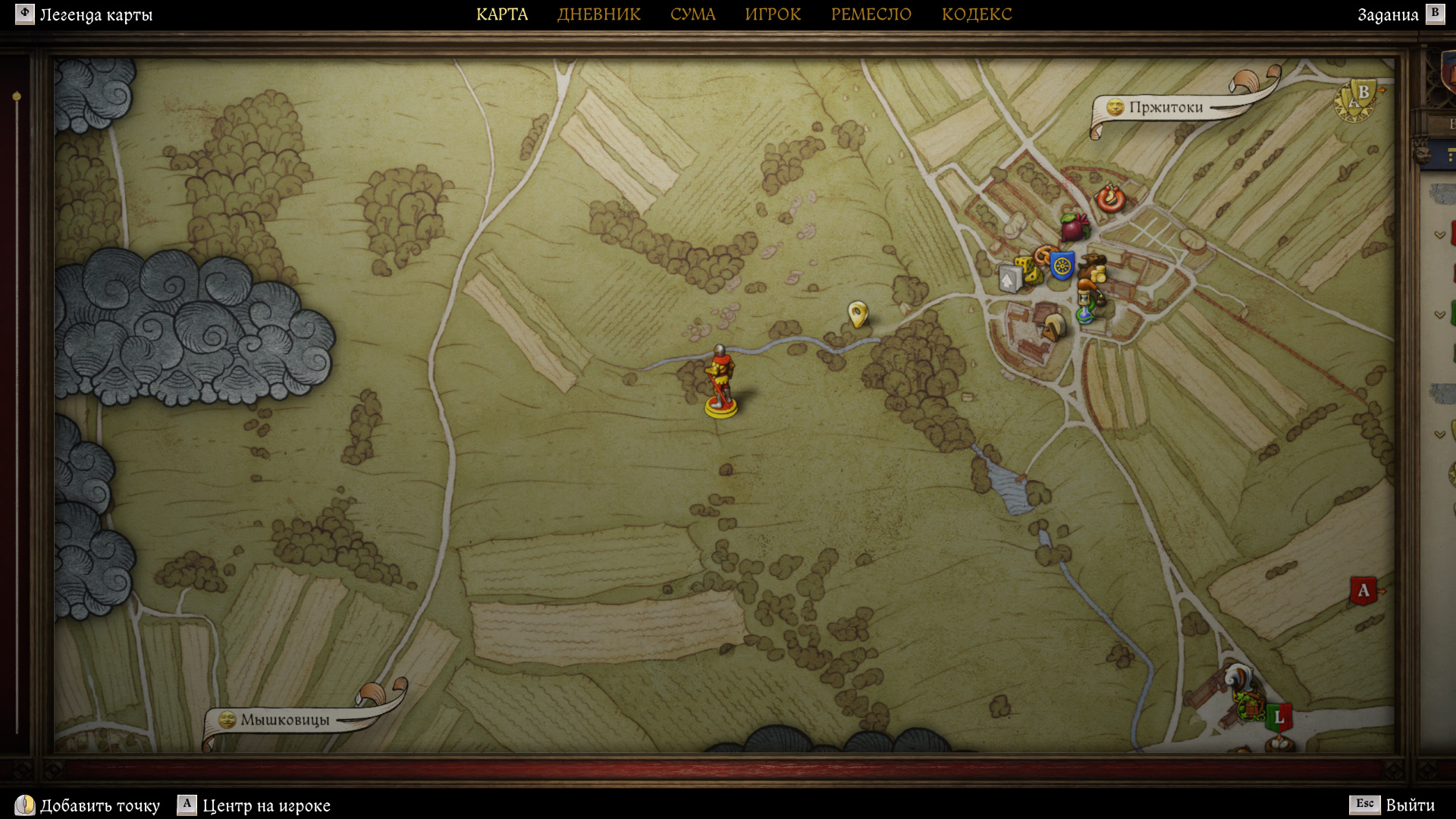 Карту Боржик дает только при соблюдении определенных условий. Следуйте на север от Пржиток и найдите поселение Грунта. Отыщите самого Боржика, который может быть на прицерковном кладбище или у себя дома. Поговорите с мужчиной, идите следом и помолитесь на могиле брата.