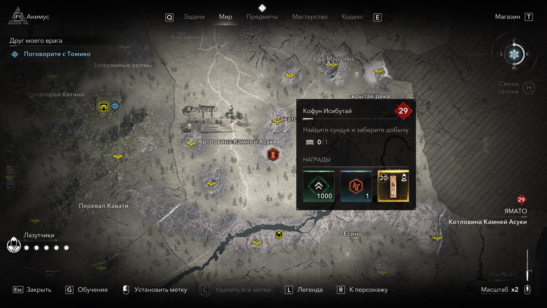Данная гробница расположена в регионе 29-го уровня Ямато, на юге. Увеличьте масштаб рядом с названием региона на карте и ищите нужное место к югу от Такатори. Точное место указано на скриншоте ниже.