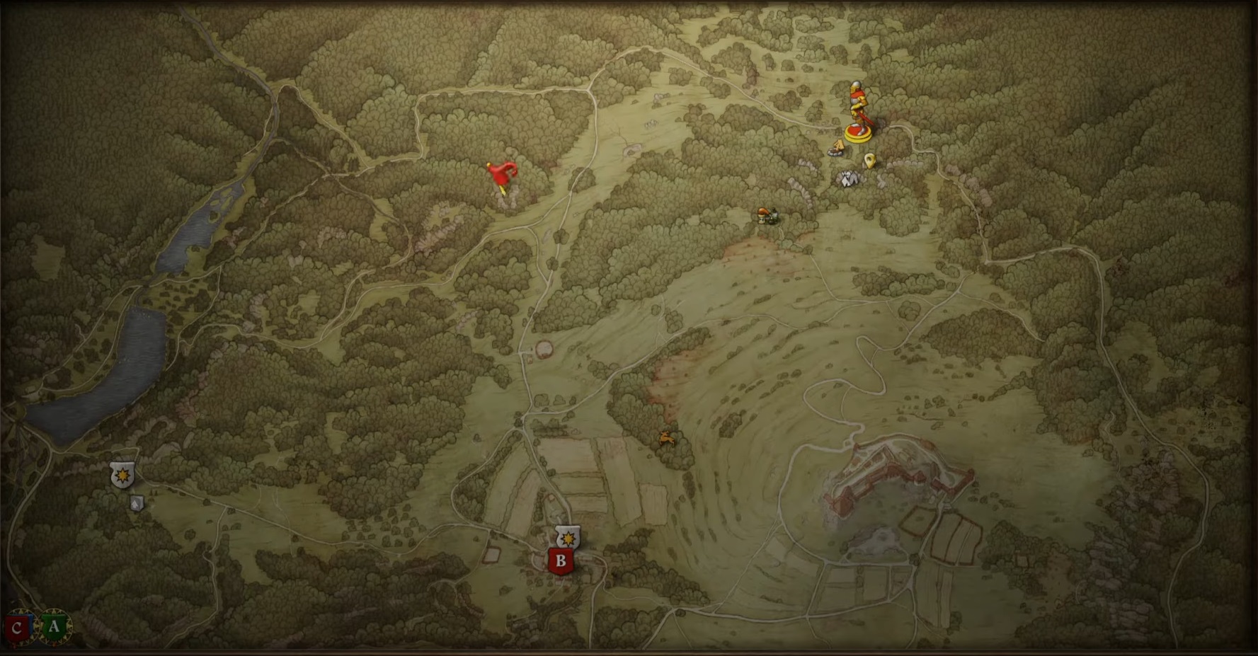 Продолжите движение на запад по той же дороге, которой воспользовались во время решения загадки Гайбла. Периодически сверяйтесь с основной картой и сопоставляйте дороги с рисунком на карте сокровищ — особое внимание обратите на характерный перекресток в форме треугольника.