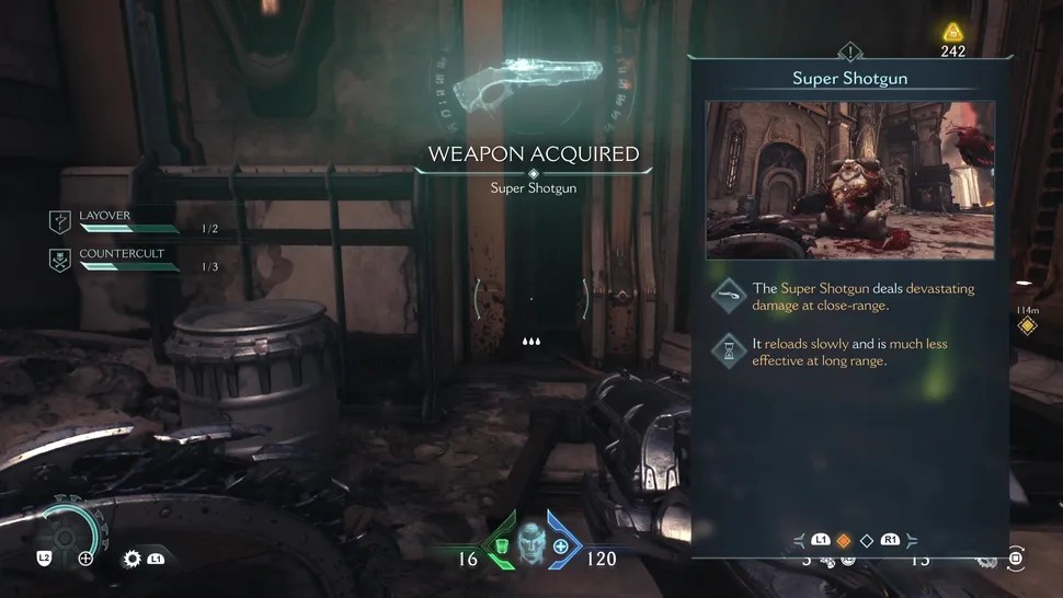Чтобы получить супердробовик, продолжите прохождение игры до пятой главы «Священный город Аратум». Ближе к концу уровня, после того как отыщете все секреты, связанные с ним, вам вручат супердробовик. И он останется с вами вплоть до финала DOOM: The Dark Ages.