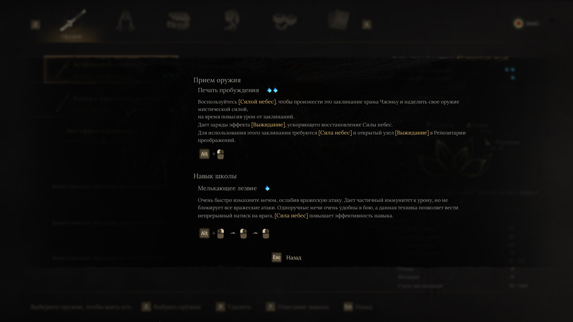 Астральный клинок — лучший выбор для игроков, ориентированных на магию. Уже с базовыми характеристиками он дает +110 к урону заклинаний, а навык «Печать пробуждения» дополнительно усиливает магические атаки, делая его мощным инструментом с самого начала игры.