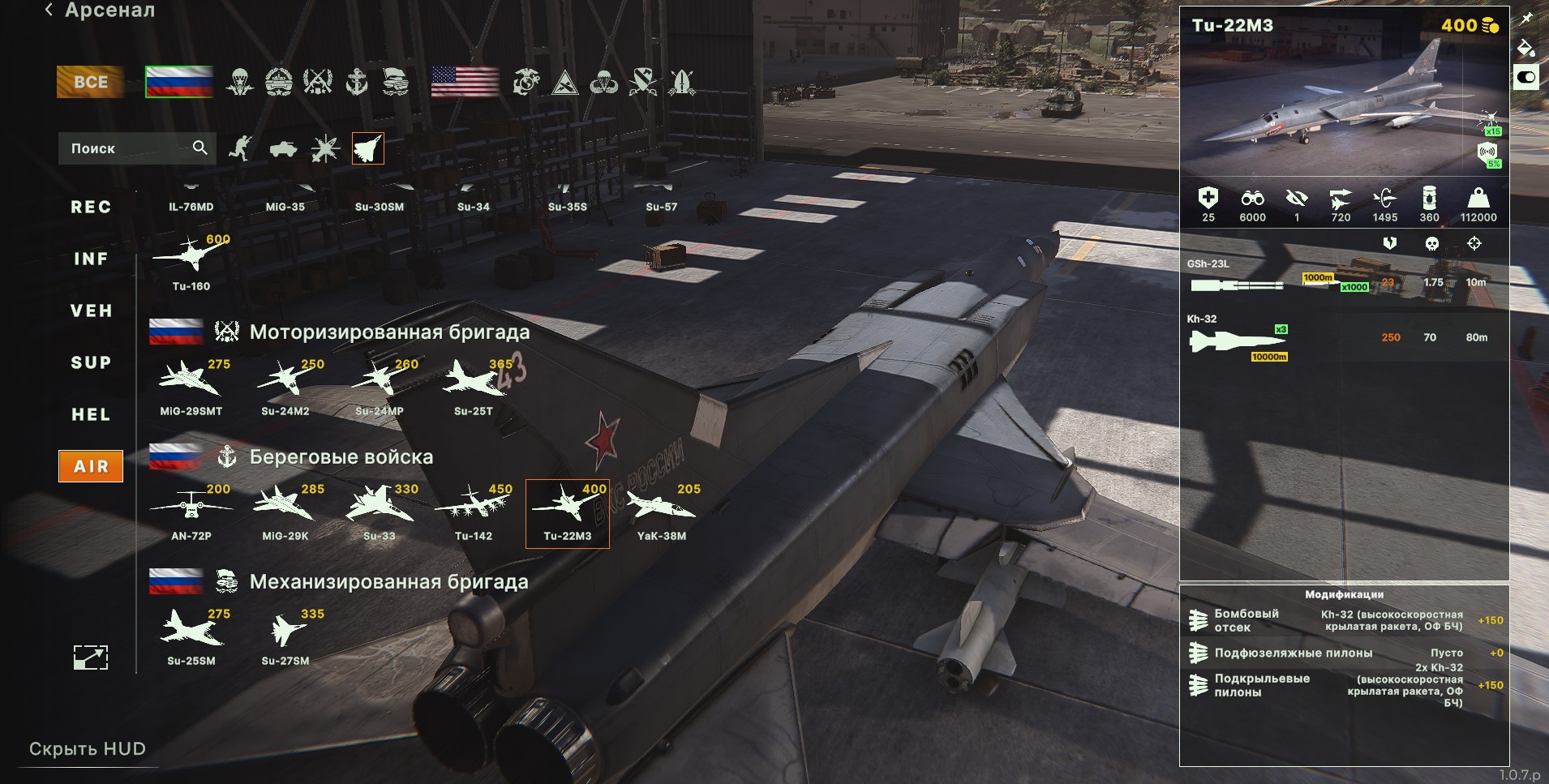 Российская авиация делает ставку на завоевание господства в воздухе. Фокус смещён в сторону истребителей, а не штурмовиков и бомбардировщиков. Главное — устранять вражеские радары до начала вылета, иначе ваша атака может быть сорвана. Также важно иметь стабильный приток ресурсов — авиаудары недешевы.
