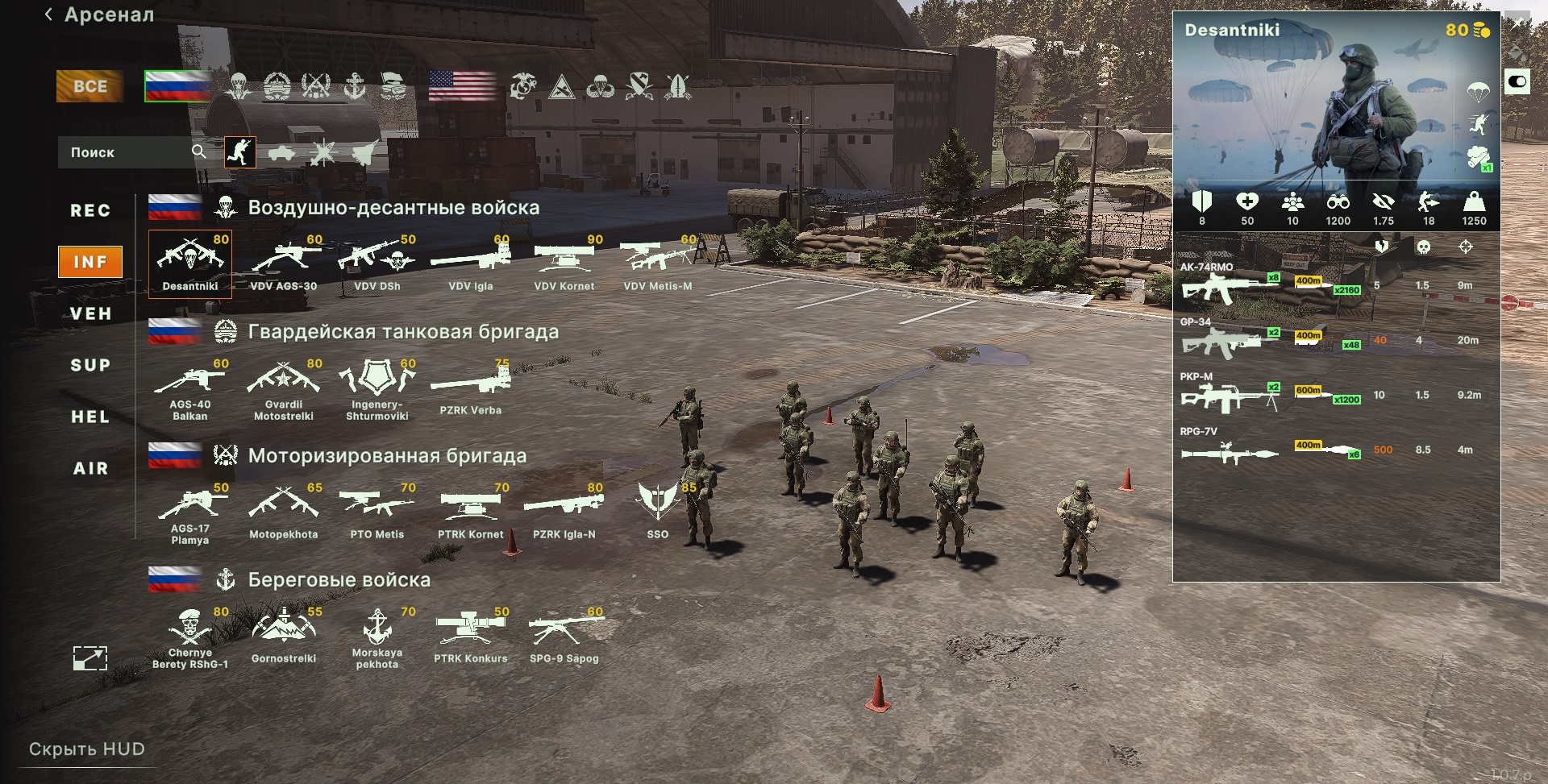 Разведывательные юниты России охватывают пехоту, технику и дроны, которые являются абсолютно конкурентоспособными с американскими аналогами. Впрочем, чтобы добиться лучших результатов придется окунуться в индивидуальные настройки экипировки в разделе «Арсенал».