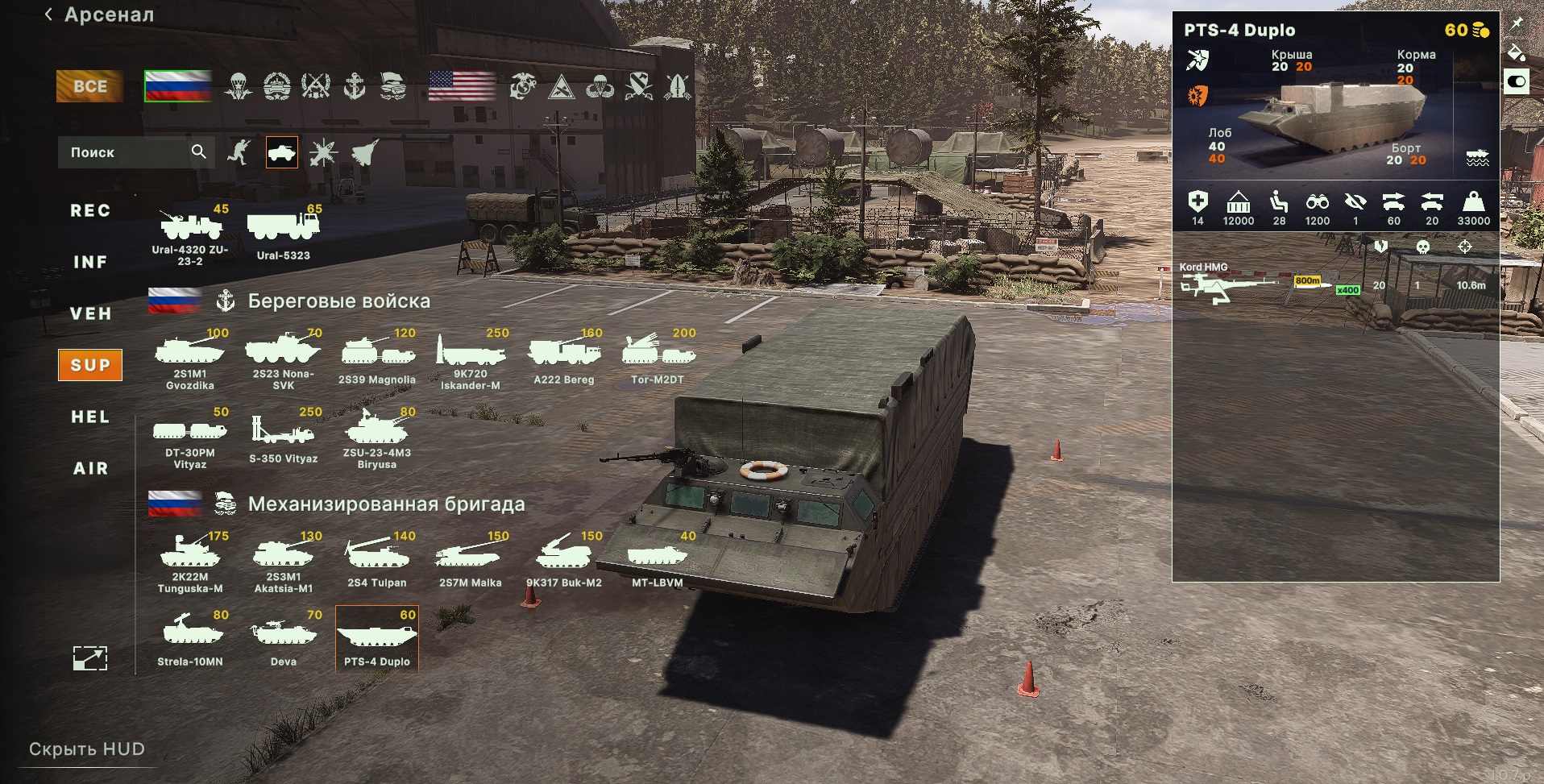 Амфибийное транспортное средство, способное перевозить как пехоту, так и технику. Прекрасно подходит для переправ через водоемы, когда воздушное десантирование несет высокие риски. Однако ПТС-4 не обладает скрытностью или серьезной защитой (кроме пулемета «Корд»), так что во время движения или применения нужна дымовая завеса или дополнительная техника в качестве охраны.