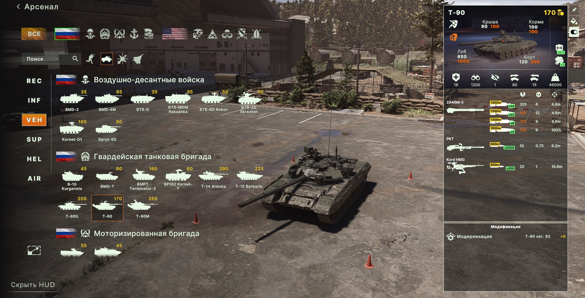Танк Т-90 — это сбалансированный вариант по соотношению цена/качество. Он немного уступает по скорости и защите более продвинутым моделям вроде Т-90М и Т-72Б3, но при значительно меньшей стоимости обладает аналогичной огневой мощью.