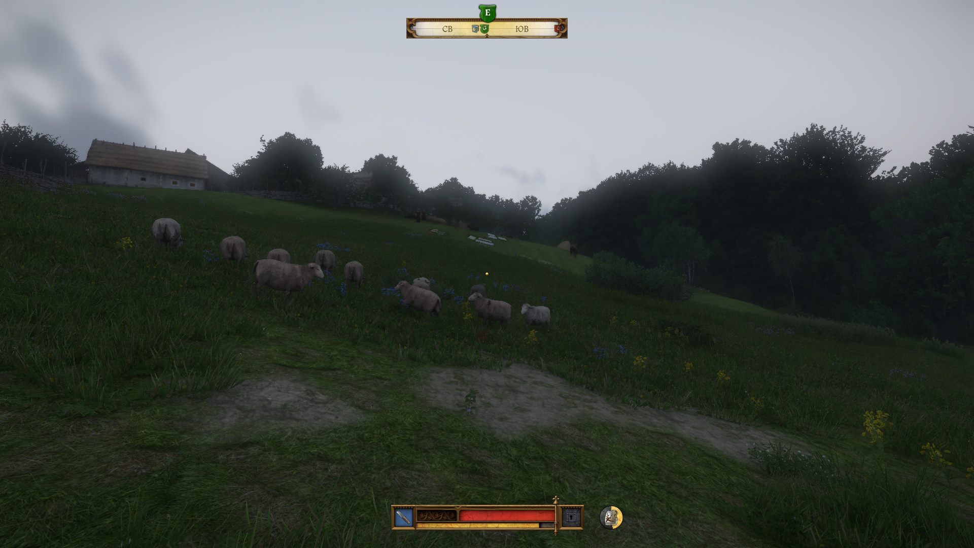 Скорее всего, делать это нужно в первой половине дня. Промотайте время (поспите или прогуляйтесь), чтобы Алшик пообедал. Отправляйтесь на пастбище — овцы должны быть без присмотра.