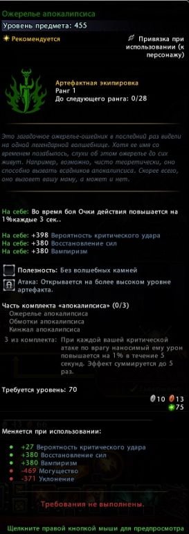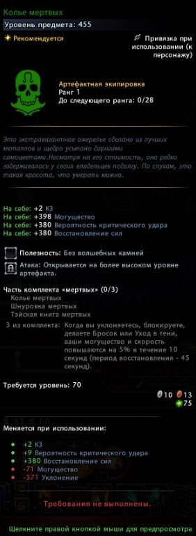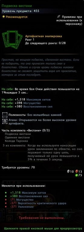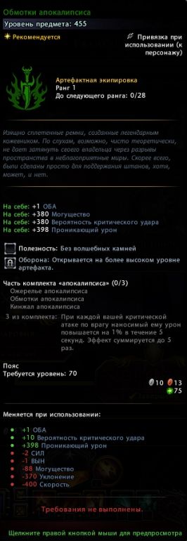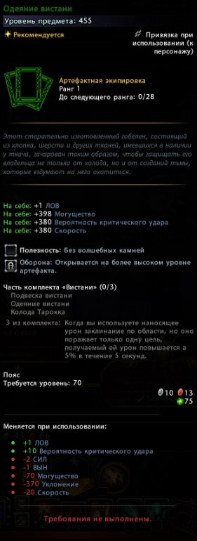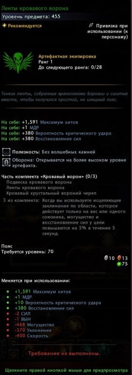 - Восемь видов артефактной экипировки 455 уровня (2500 баровийских монет):
