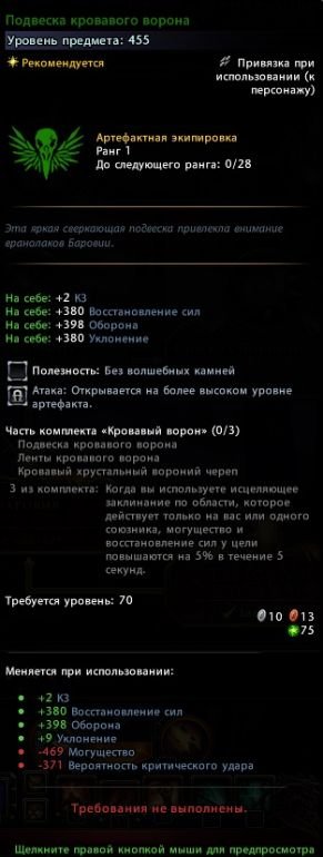 - Хитрость ворона: +600/900/1200 единиц к сопротивляемости контролю.