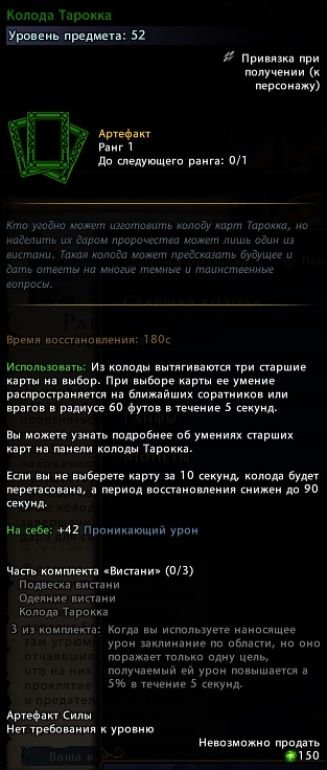 - Награда: +25 единиц максимальных знамений, случайная «Старшая карта Таррока».
