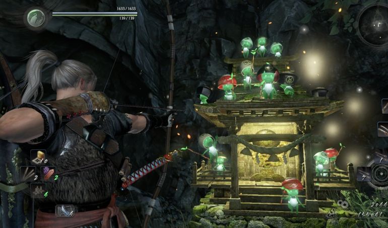Кодама №3. Продолжайте двигаться вперед, пока не доберетесь до лестницы и не пройдете по пути через ворота. С правой стороны спрятан монстр. Убейте его и посмотрите на балкон слева. Это перед мостом, который ведет ко второму алтарю.