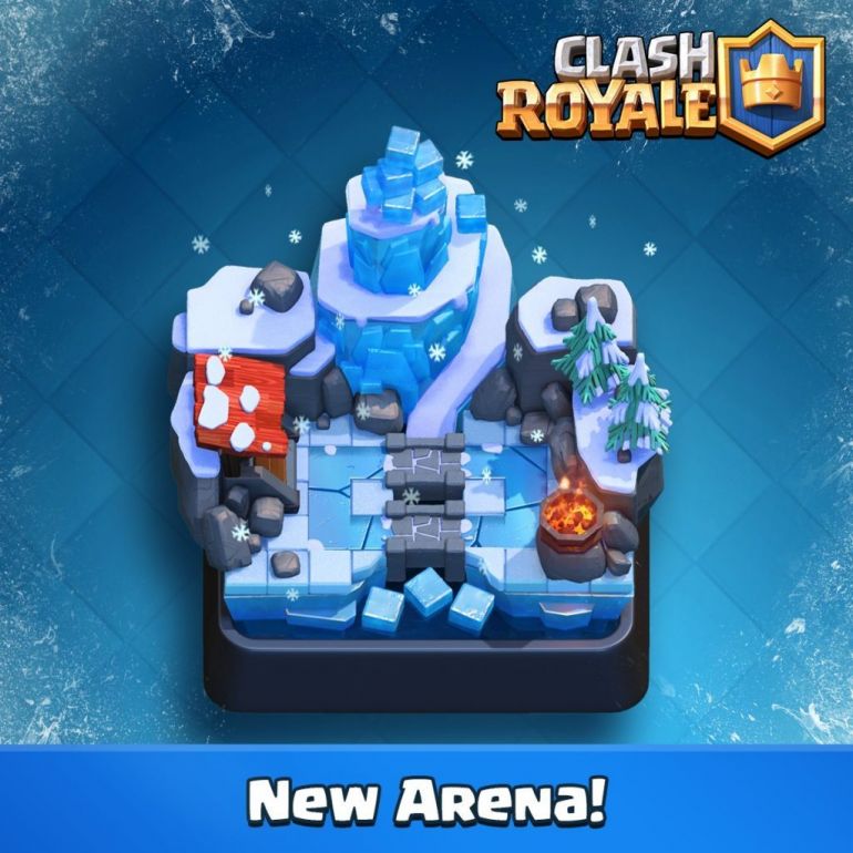 Новая арена «Замерзший пик» стоит под номером 8 в списке и представляет собой ледяное поле. Опробовать его можно будет только заполучив больше 2300 трофеев.