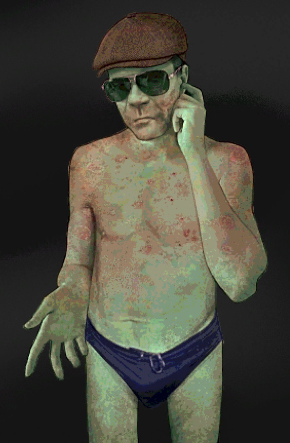 Этот персонаж может оказаться как обычным человеком, так и гостем. Для определения необходимо осмотреть руки, подмышки и фотографию. Если перед вами человек, на руке будет пластырь без покраснений, подмышки выглядят чистыми и покрыты волосами, а на снимке силуэт состоит из трёх чётких цветов — красного, зелёного и жёлтого. Гость выдаёт себя воспалением вокруг пластыря, грибковым поражением подмышек и странной деталью на фото: рядом с жёлтым силуэтом появляется размытый белёсый контур.