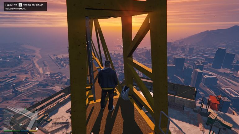 Чтобы добраться до следующего прыжка придётся попотеть. Напротив Maze Bank строится высотное здание. Для того чтобы начать задание, придётся подняться на самый верх строительного крана возле стройки. Это займёт минут пять. Когда окажетесь наверху, берите парашют, чтобы начать задание. Приземлиться нужно на грузовик, едущий по дороге.