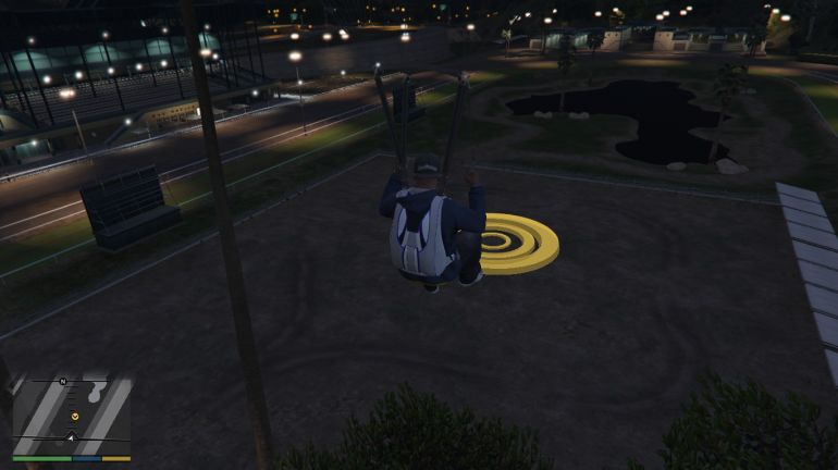 Возле Eclipse Tower, знакомой многим по GTA Online, будет лежать парашют. Когда задание начнётся, вы окажетесь на крыше Eclipse Tower. Прыгайте и раскрывайте парашют. Приземлиться нужно на поле для гольфа напротив. Не стоит затягивать свободное падение, иначе не успеете преодолеть высокий забор, который окружает поле для гольфа.