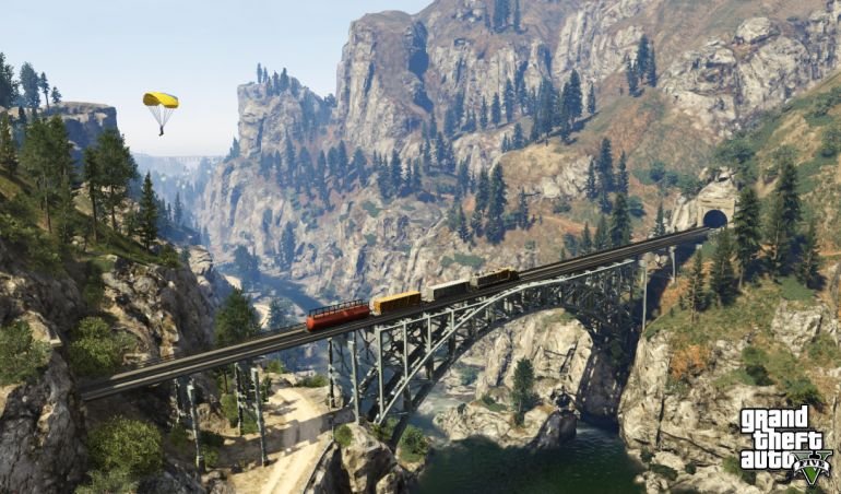 Последний парашютный прыжок в Каньоне Ратон. На краю обрыва вы найдёте вертолёт, который поднимет вас в воздух. На этот раз вам нужно приземлиться на грузовой поезд, проходящий по мосту через каньон. Чёткого места приземления нет, главное, приземлиться на поезд и не упасть с него. После приземления поезд не остановится и продолжит свой путь. Если вы проходите парашютные прыжки подряд, то это самый быстрый путь к следующему испытанию. Правда, поезд не остановится в Палето, поэтому придётся спрыгивать на ходу.